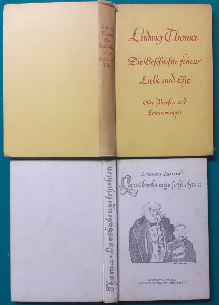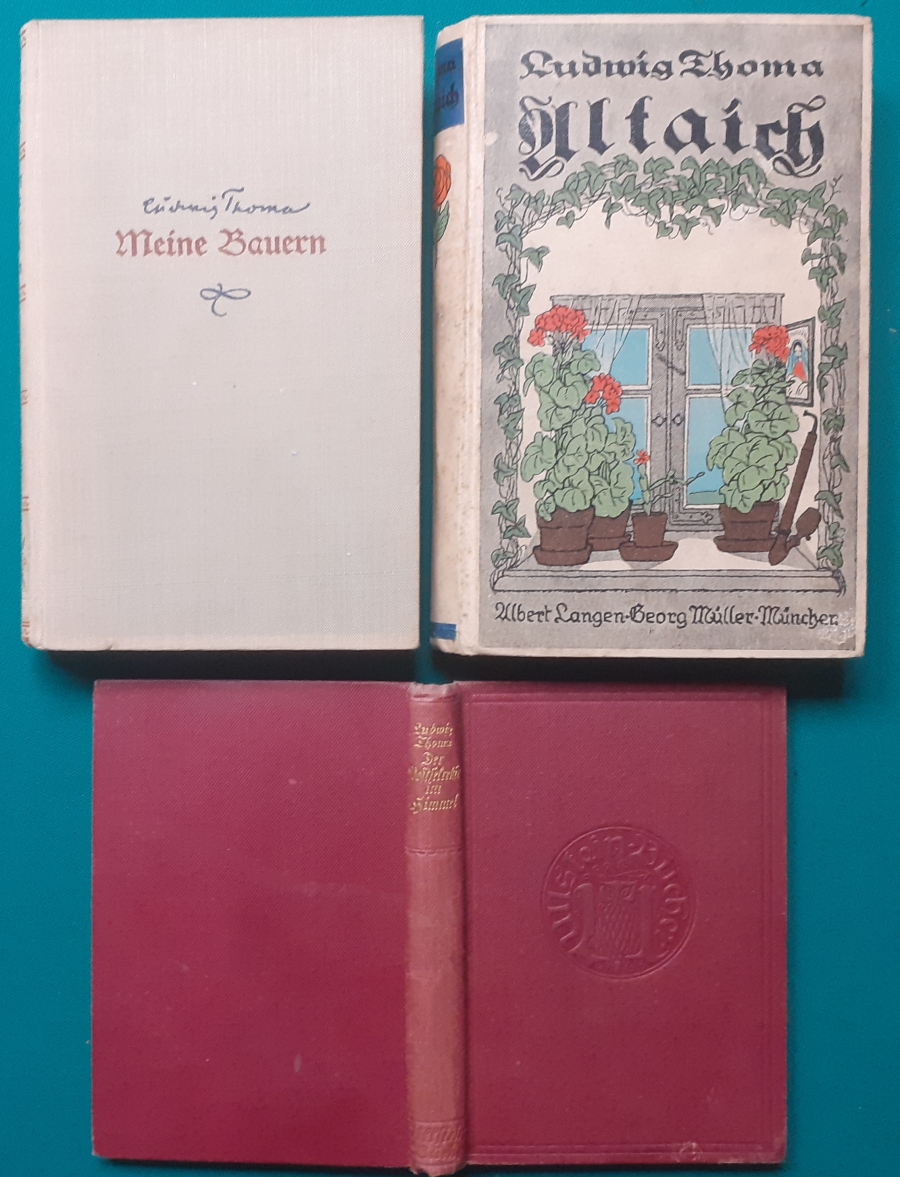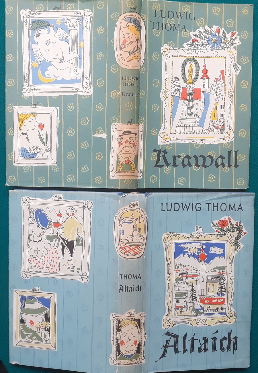 Die Thoma-Reihe der Büchergilde Gutenberg aus den 1950er Jahren; es handelt sich um Voll Leinen Einbände mit sehr dekorativem Schutzumschlag im Format 21 x 13 cm Ludwig Thoma