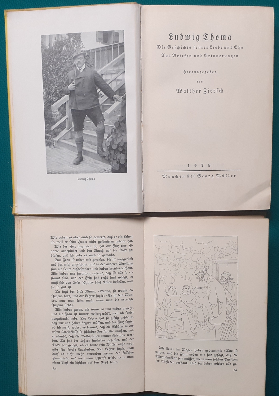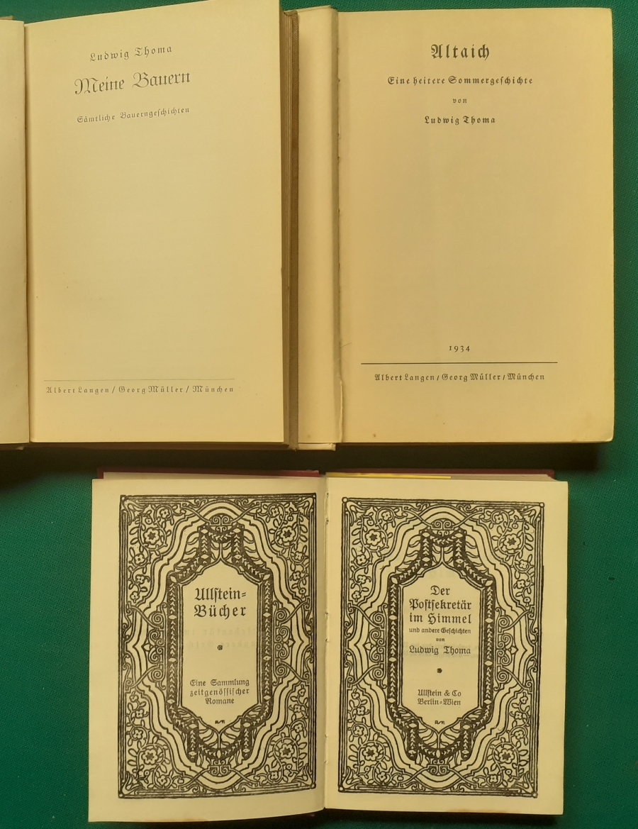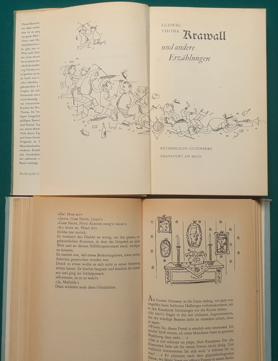 Die Thoma-Reihe der Büchergilde Gutenberg aus den 1950er Jahren; es handelt sich um Voll Leinen Einbände mit sehr dekorativem Schutzumschlag im Format 21 x 13 cm Ludwig Thoma