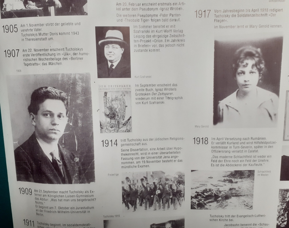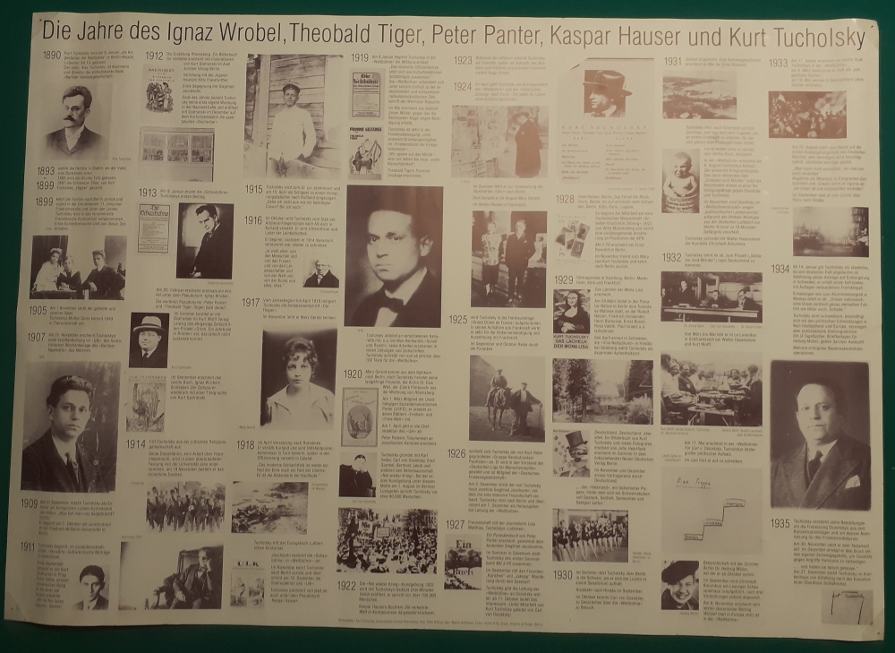 Kurt Tucholsky (geb. am 9. Januar 1890 in Berlin; gest. am 21. Dezember 1935 in Hindas/Schweden) war ein deutscher Journalist und Schriftsteller. Er veröffentlichte unter den Pseudonymen Kaspar Hauser, Peter Panter, Theobald Tiger und Ignaz Wrobel. Tucholsky zählt zu den bedeutendsten Publizisten der Weimarer Republik. Als politisch engagierter Journalist und zeitweiliger Mitherausgeber der Wochenzeitschrift Die Weltbühne erwies er sich als Gesellschaftskritiker in der Tradition Heinrich Heines. Zugleich war er Satiriker, Kabarettautor, Liedtexter, Romanautor, Lyriker und Kritiker (Literatur, Film, Musik). Er verstand sich selbst als linker Demokrat, Sozialist, Pazifist und Antimilitarist und warnte vor der Erstarkung der politischen Rechten – vor allem in Politik, Militär und Justiz – und vor der Bedrohung durch den Nationalsozialismus.