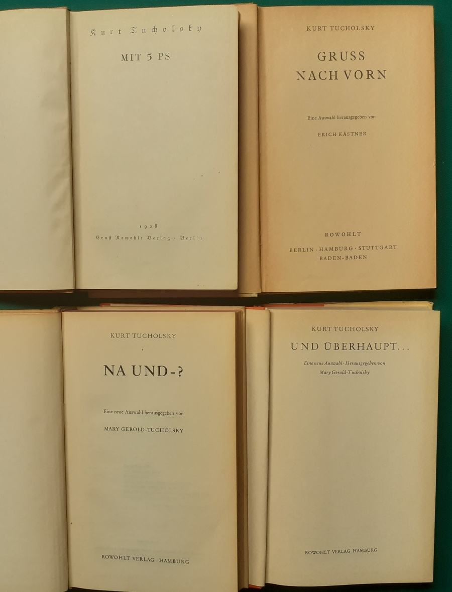 Kurt Tucholsky: Ausgewählt von Fritz J. Raddatz in 4. Auflage 1966. Jeder Band ist rund 510 Seiten stark, Voll-Leinen mit Schutzumschlag im Format von jeweils 19,5 x 12 cm. Der Zustand beider Bände ist altersgemäß sehr gut. Komplettpreis: 12 EURO |
