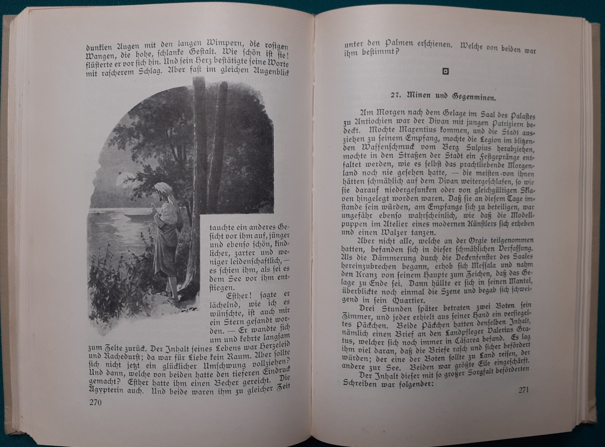 Ben Hur Deutsche Verlagsanstalt Berlin; Ausgabe um 1900, 460 Seiten; mit wunderbaren z. T. großformatigen Illustrationen von Anton C. Baworoswki; mit einer Biografie und einem Bild des Verfassers; Voll-Leinen Ausgabe; Luxus-Ausgabe in sehr guter Verarbeitung im Maxi-Format 27 x 18,5 cm; sehr fester Einband und gute Bindung; an den Buchkanten bestoßen; Einband etwas berieben; Rücken an einigen Stellen etwas beschädigt; Buchblock etwas im Gelenk gelockert - aber alle Blätter fest; insgesamt recht guter altersgemäßer Zustand Preis: 13 EUR |