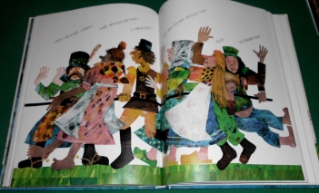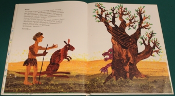 Eric Carles Märchenbuch Buchgemeinschaftsausgabe, Ausgabe um 1978, 96 Seiten, fester rundum lackierter Hartpappeinband im Großformat 29 x 21,5 cm, etwas an den Buchkanten bestoßen; recht guter altersgemäßer Zustand