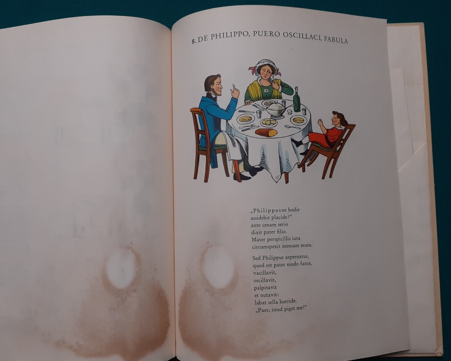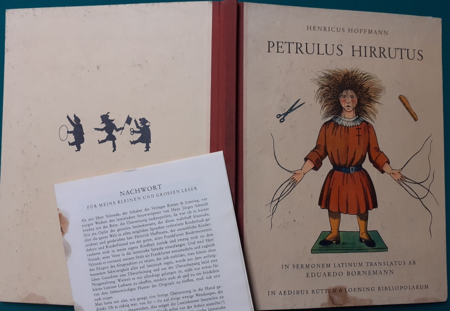 Henricus Hoffmann: Rütten und Loening Verlag Berlin, Ausgabe von 1956, ca. 64 Seiten - nicht paginiert, mit einem 12seitigen beigelegten Nachwort des Autors mit lateinischen Vokabeln usw.; Leinenrücken mit festem Hartpappeinband im Format 25,5 x 20cm; Einband vorn unten etwas fleckig; auch innen auf einigen Blättern unten unschön braunfleckig (siehe Abbildungen); ansonsten gepflegt und altersgemäßer noch recht guter Zustand Sonderpreis wegen der