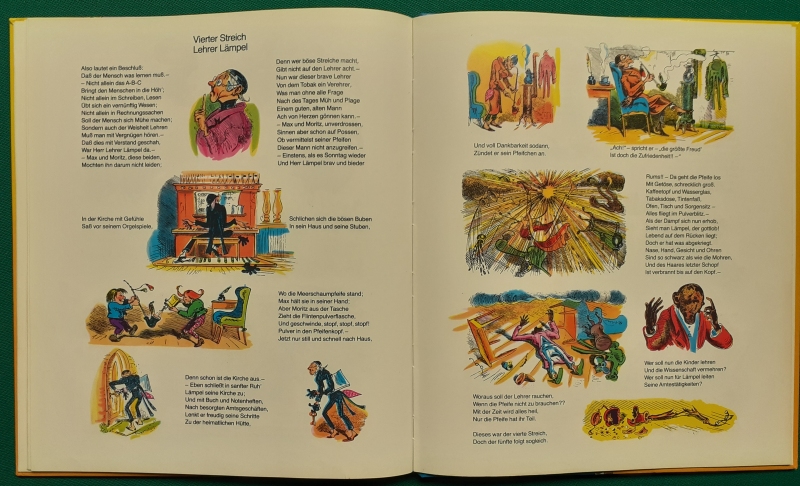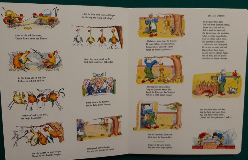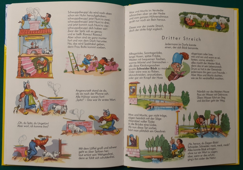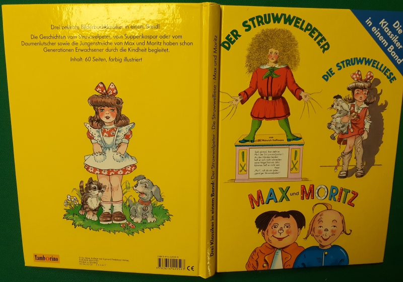 Max und Moritz Tamborino Verlag München, Ausgabe von 2002, 60 Seiten - nicht paginiert - im Format 27 x 20 cm, sehr fester rundum lackierter Hartpappeinband; altersgemäßer sehr guter Zustand - offenbar kaum benutzt Preis: 6 EUR |