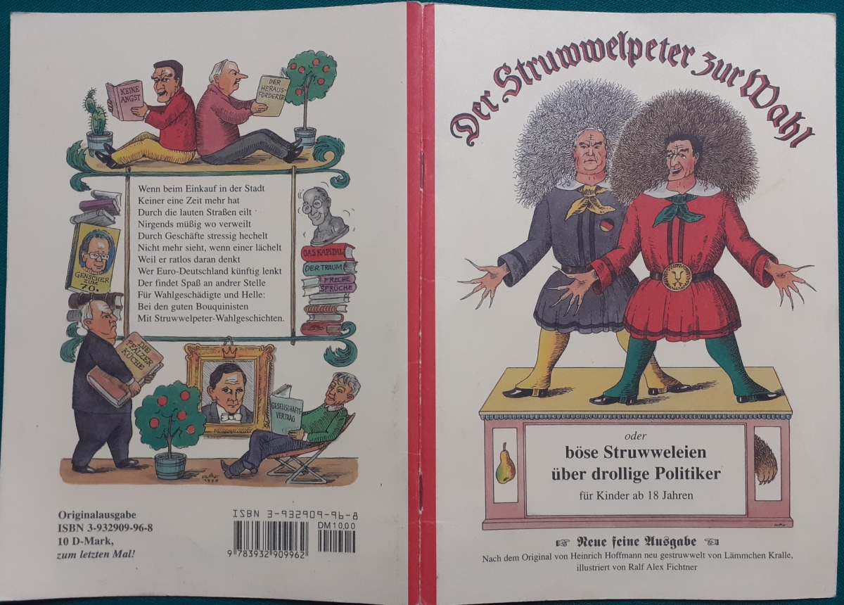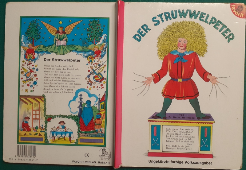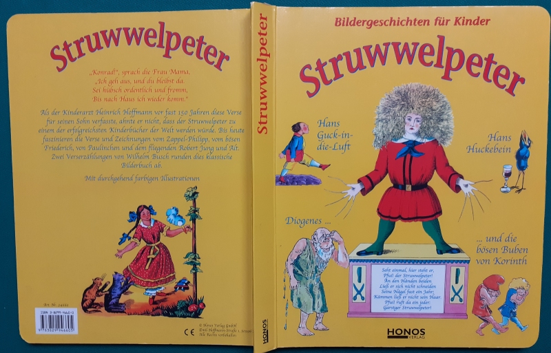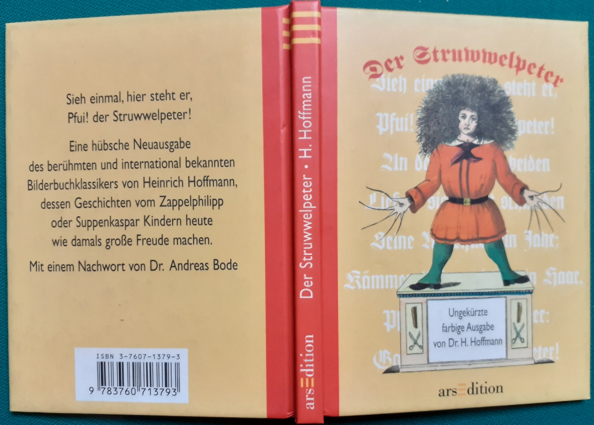 Ein Mini-Struwwelpeter: Der Struwwelpeter ars edition München, Ausgabe von 2002, Nachwort von Andreas Bode, fester wasserabweisender Hardcovereinband im Mini-Format 13,5 x 10 cm, leicht fleckig; altersgemäßer sehr guter Zustand, Preis: 4 EUR |