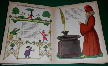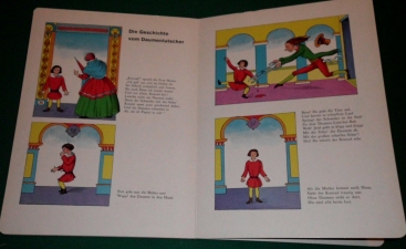 Hoffmann: Ausgabe um 1950, 24 Seiten in festem Hartkarton, Verlag unklar ??? (vermutlich Pestalozzi); Leinenrücken mit Hartpappeinband, Format 23,5 x 17 cm, Buchkanten bestoßen, vorderer Einband etwas fleckig; innen sauber, insgesamt altersgemäßer guter Zustand, Preis: 11 EURO |
