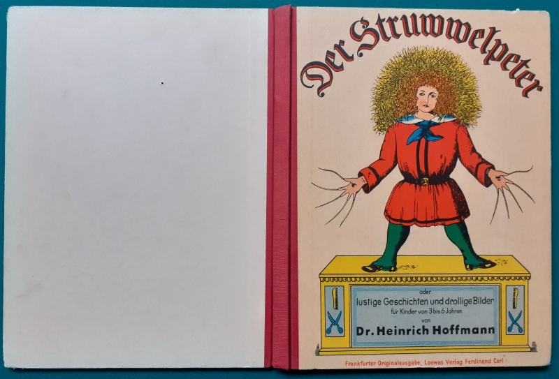 Hoffmann: Nachdruck der Frankfurter Originalausgabe; Loewes Verlag Ferdinand Carl, Ausgabe um 1980, 24 Seiten in glanzlackiertem Hartkarton, wasserabweisender sehr fester Hardcover Einband, Format 24,5 x 18,5 cm, innen sauber, altersgemäßer sehr guter Zustand, Preis: 8 EURO |
