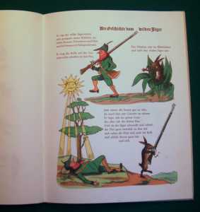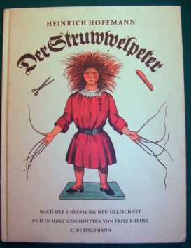 Heinrich Hoffmann: nach der Urfassung neu gezeichnet und in Holz geschnitten von Fritz Kredel, Bertelsmann Verlag München, Ausgabe von 1993, Format 25,5 x 20 cm, Hardcover, Einband etwas fleckig, innen aber sehr sauber, sonst recht guter Zustand, Preis: 8 EUR Hier zur Illustratoren-Galerie mit typischen Arbeiten von Fritz Kredel |