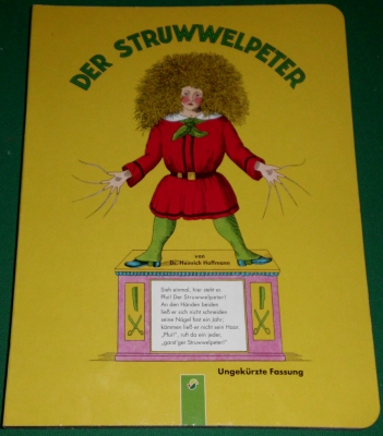 Hoffmann: Der Struwwelpeter Original-Verlag: Rütten & Loening, Berlin, 541. Auflage von 1994, 24 dicke Papier-Seiten, Leinenrücken mit Hartpappeinband, Format 26,5 x 21 cm, Buchkanten bestoßen, innen sauber, insgesamt altersgemäßer recht guter Zustand, Preis: 11 EURO |