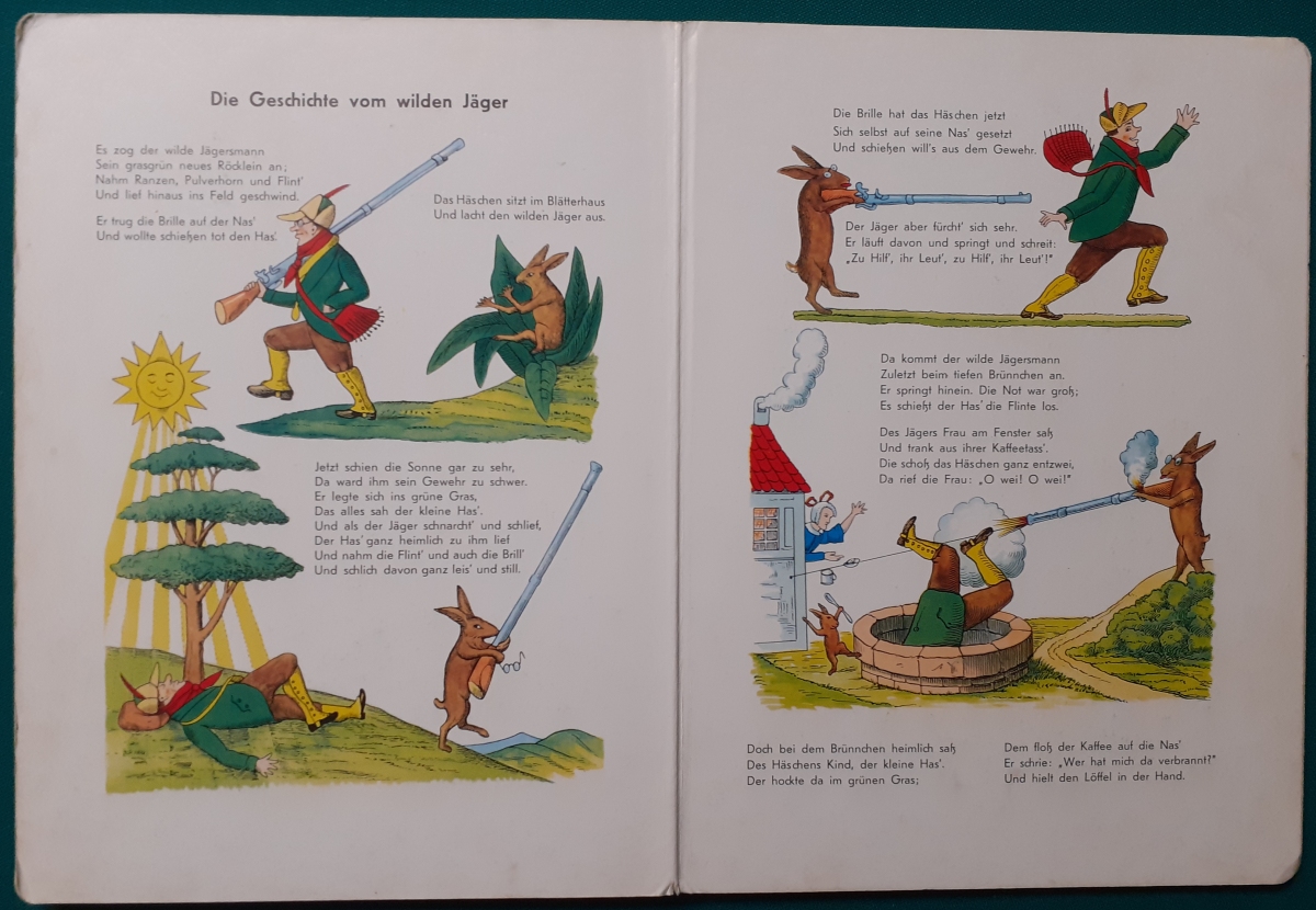 Hoffmann: S und S Verlag Nürnberg; Ausgabe um 1950; Leinenrücken mit sehr festem Hartpappeinband; 20 Seiten; Rücken unten etwas beschädigt; leicht fleckig; insgesamt sehr gepflegt und guter altersgemäßer Zustand, Preis: 9 EUR |
