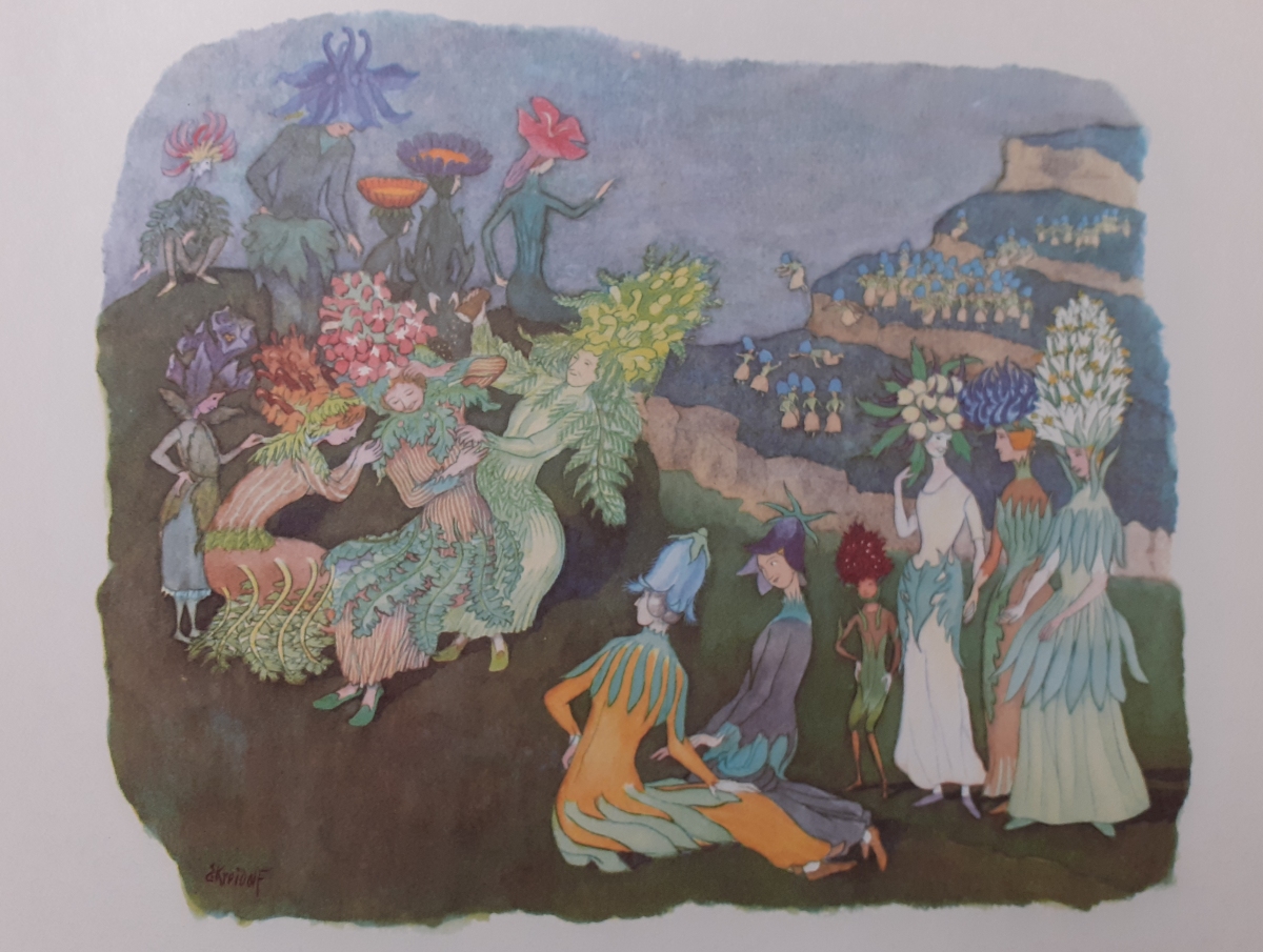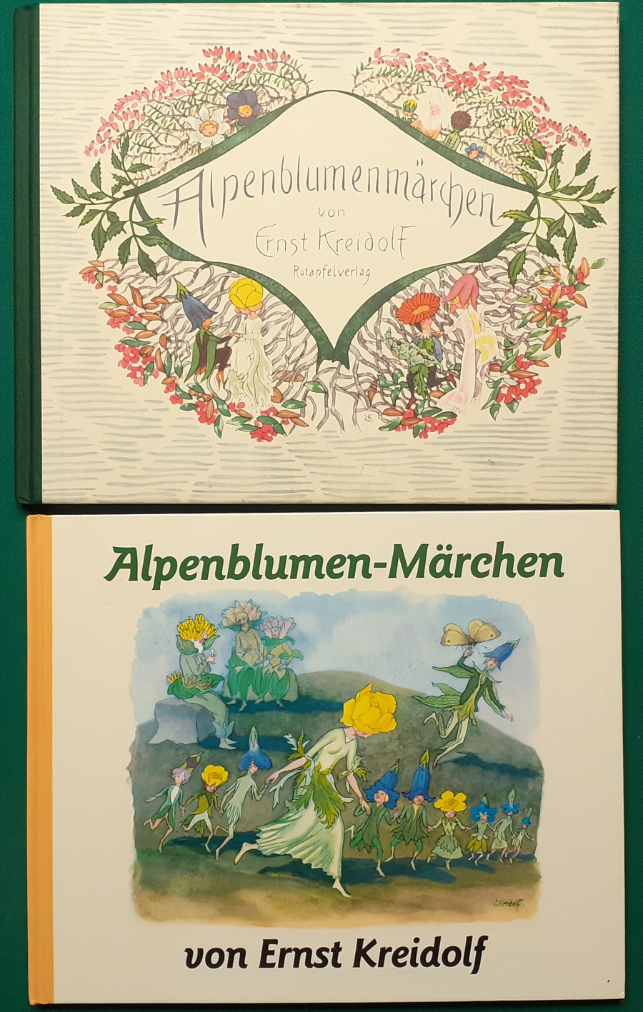 Ernst Kreidolf (geb. am 9. Februar 1863 in Bern; gest. am 12. August 1956 ebenda; eigentlich Konrad Ernst Theophil Kreidolf) war ein Schweizer Grafiker und Illustrator von Kinderbüchern. Ernst Kreidolf wurde 1863 als Sohn eines Kaufmanns in Bern geboren. Er besuchte zuerst die Volksschule in Tägerwilen und danach die Sekundarschule in Emmishofen (heute Kreuzlingen). Von 1879 bis 1883 absolvierte er eine Lehre als Lithograf in Konstanz. Ab 1883 besuchte er die Kunstgewerbeschule in München und ab 1889 die dortige Akademie der Bildenden Künste. Seinen Lebensunterhalt bestritt er damals mit dem Zeichnen von Verbrecherporträts für das Münchener Fahndungsblatt. 1897 stellte Kreidolf im Arnoldschen Kunstsalon in Dresden seine Aquarelle zu den Blumenmärchen und zu "Schlafende Bäume" aus, die das Interesse einiger Kinderbuchverleger fanden, von denen sich jedoch keiner zu einer Publikation entschließen konnte. Erst durch ein Darlehen des Fürsten von Schaumburg-Lippe konnte Kreidolf das Bilderbuch "Blumenmärchen" im Kommissionsverlag Piloty & Löhle in München herausgeben. Die Lithografien für den Druck erstellte Kreidolf selbst. Seit 1898 illustrierte er überwiegend Kinderbücher, die er zum Teil auch selbst schrieb. Blumen und Tiere spielen in diesen Büchern eine wichtige Rolle. So finden sich etwa personifizierte Schmetterlinge und Insekten, die Kreidolf in traumhaften Metamorphosen miteinander verwob. Seine Bücher erschienen vor dem Ersten Weltkrieg vor allem im Verlag Hermann & Friedrich Schaffstein (bis 1905 Schafstein) und nach der Rückkehr in die Schweiz beim Rotapfel-Verlag. 1918 siedelte er endgültig nach Bern über, nachdem er seit 1916 schon über längere Zeit in der Schweiz gearbeitet hatte. 1956 verstarb Kreidolf in seiner Geburtsstadt Bern. Informationen von wikipedia, Stand: 22.12.2014 |