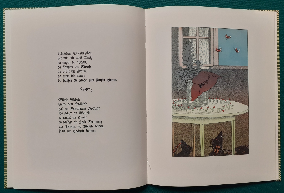 Ernst Kreidolf: Alte Kinderreime Bilder von Ernst Kreidolf; mit einem Nachwort von Sabine Knopf; Manuscriptum Verlag, Waltrop u.a.; Nachdruck der Originalausgabe von 1905 aus dem Jahr 2002; ca. 30 Seiten - nicht paginiert; fester wasserabweisender Hardcovereinband im Maxi-Format 30 x 23,5 cm; neuwertiger Zustand Preis: 12 EURO |