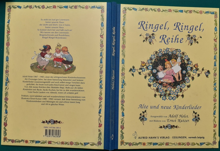 Ringel, Ringel, Reihe Alfred Hahn´s Verlag Esslingen, Ausgabe von 2002, 36 Seiten, Leinenrücken mit festem wasserabweisendem Hardcovereinband; Format 28 x 21,5 cm, leicht an den Buchkanten bestoßen; sehr guter altersgemäßer Zustand Preis: 7 EURO |