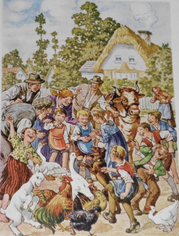 Magdalene Wannske Alfred Hahn´s Verlag Hamburg u.a., Ausgabe um 1960, rd. 40 Seiten in Seidenglanz, Leinenrücken mit lackiertem sehr festen Hartpappeinband, Format 21 x 18 cm, etwas an den Buchkanten bestoßen; Buchblock war im Gelenk gelockert und wurde mit hellem Klebeband im Vor- und Nachsatz innen stabilisiert; Bindung sonst ok. und alle Seiten fest; leider Einriss auf einem Blatt - wurde mit Tesafilm repariert; Seiten etwas fingerfleckig vom Umblättern; ansonsten ok. und insgesamt noch befriedigender altersgemäßer Zustand Preis: 5 EURO |