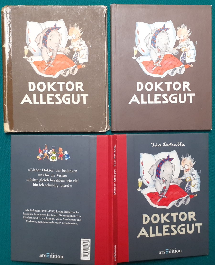 Abbildung rechts oben: Ausgabe um 1980; ca. 20 Seiten in normaler Druckschrift - nicht paginiert; rundum lackierter fester Hartpappeinband; innen auf zwei Seiten Reste von Kinderkrakeleien - stören aber nicht sehr; sonst ok. und noch befriedigender altersgemäßer Zustand |