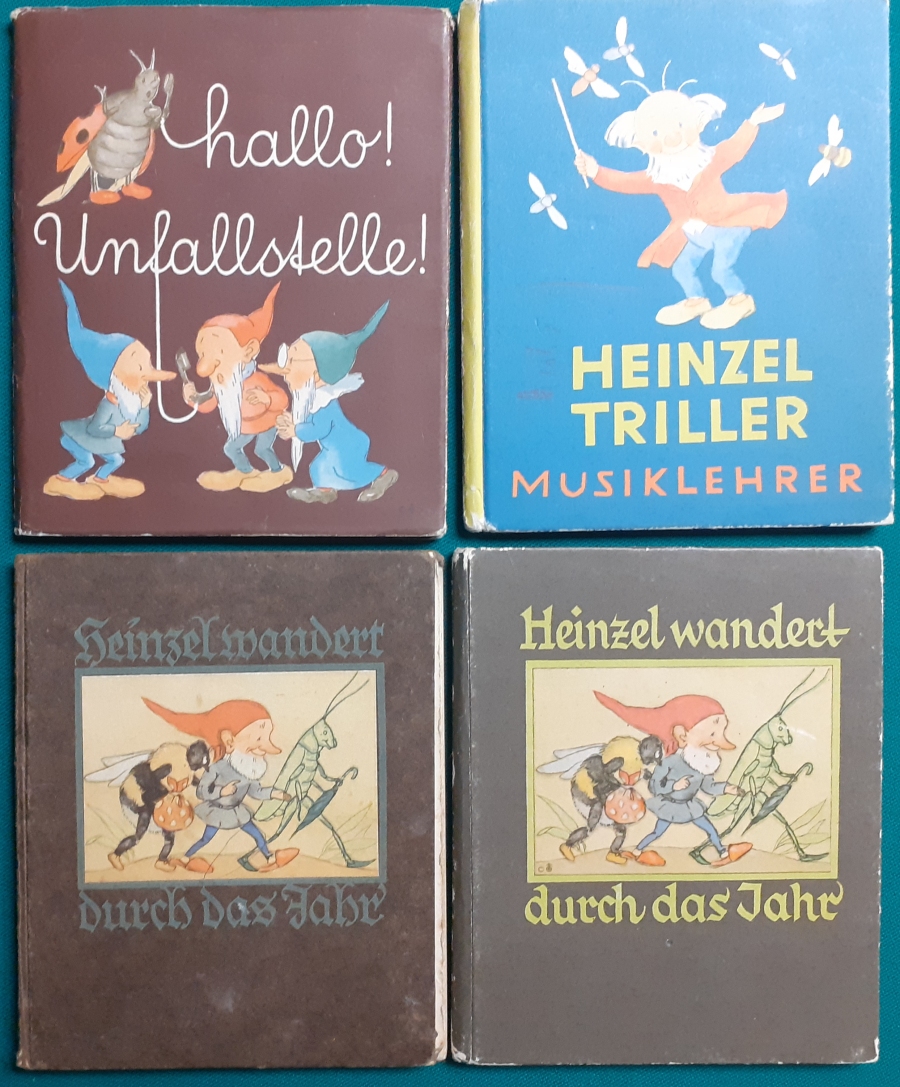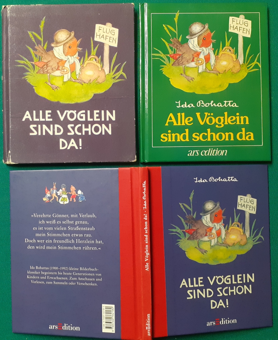 Abbildung links oben: Erstausgabe von 1959; ca. 20 Seiten in normaler Druckschrift - nicht paginiert; mit noch farbenprächtigen Bildern; in mattem festen Hartpappeinband; sehr guter altersgemäßer Zustand |