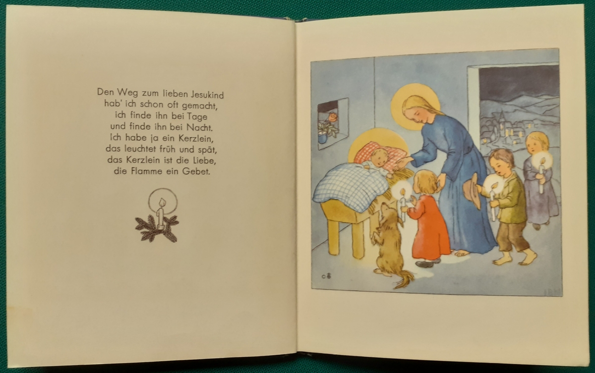 | Ein Tag in Bethlehem | Ausgabe um 1950; ca. 20 Seiten in normaler Druckschrift - nicht paginiert; mit noch farbenprächtigen Bildern; in mattem festen Hartpappeinband; etwas an den Buchkanten bestoßen; guter altersgemäßer Zustand | 9 |
