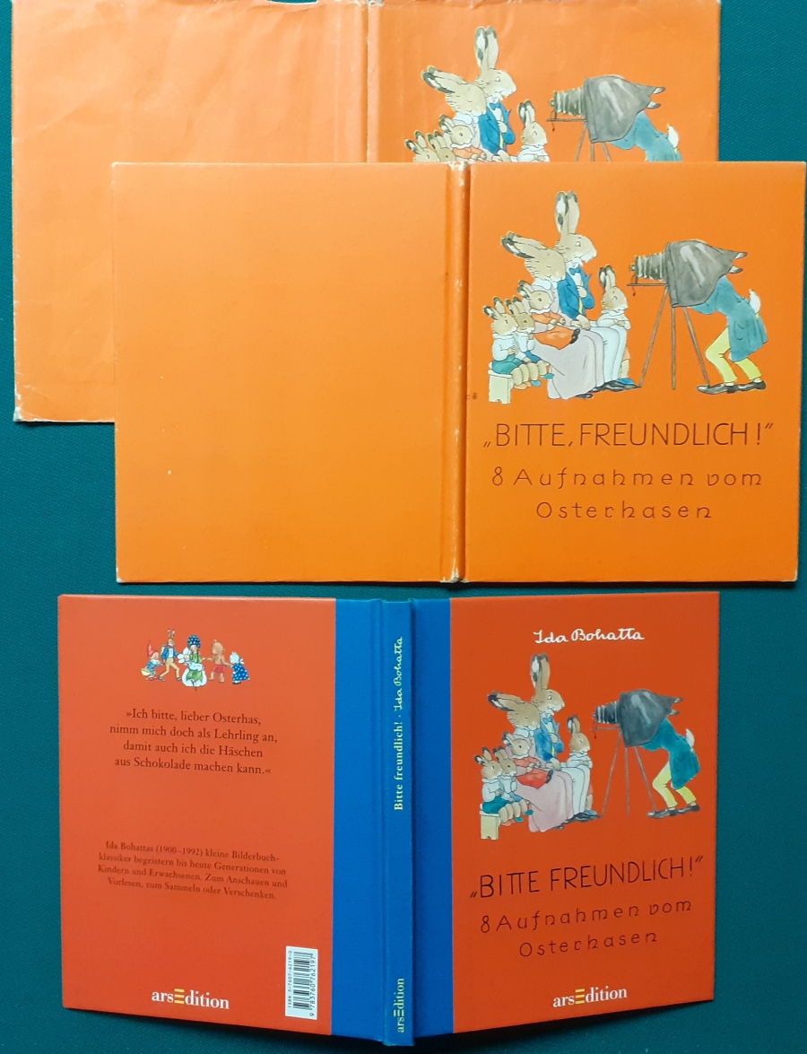 Abbildung rechts: Ausgabe um 1960; ca. 20 Seiten in moderner Druckschrift - nicht paginiert; Bilder noch sehr farbenprächtig; fester matter Hartpappeinband mit dem seltenen Schutzumschlag; deshalb ist der Einband gut geschützt; kaum irgendwelche Gebrauchsspuren; das Buch ist in sehr gutem altersgemäßen Zustand |