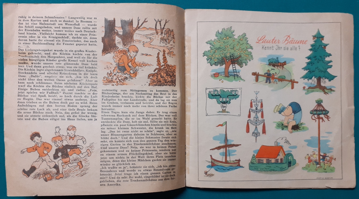 Anneliese Hermann: Die rote Dose - Bilder von Gisela Voh; Kennt Ihr die Bäume?; Lili Börsch: Mutti, wie viel Uhr ist es?; Karin von Merhart-Wallin: Tier und Trolle, die den Winter verschlafen - Bilder von Fritz Baumgarten; Westerberger: Mariechen hat einen Hutladen ... | an den Heftkanten bestoßen; Einband beschädigt und mit Tesafilm schonend repariert; Rücken mit Pappstreifen stabilisiert; innen noch recht schön; Klammerbindung defekt und mit Tesafilm geklebt; insgesamt noch befriedigender altersgemäßer Zustand | 4 |