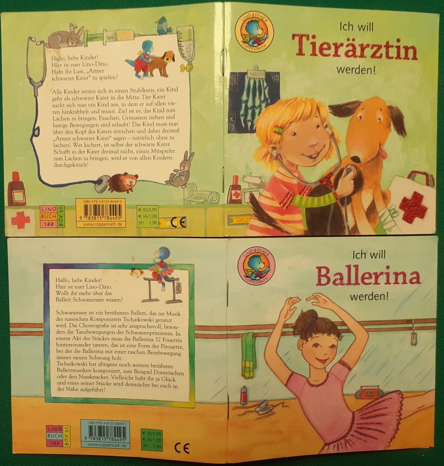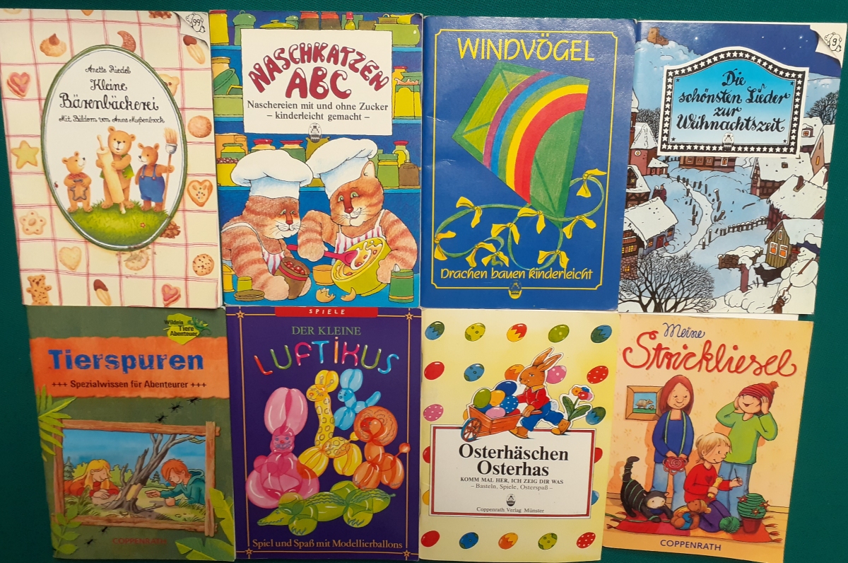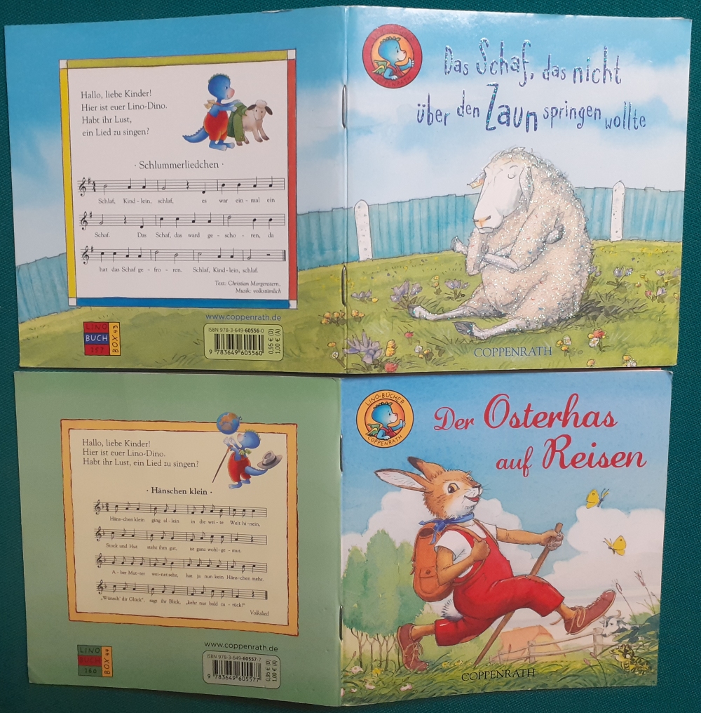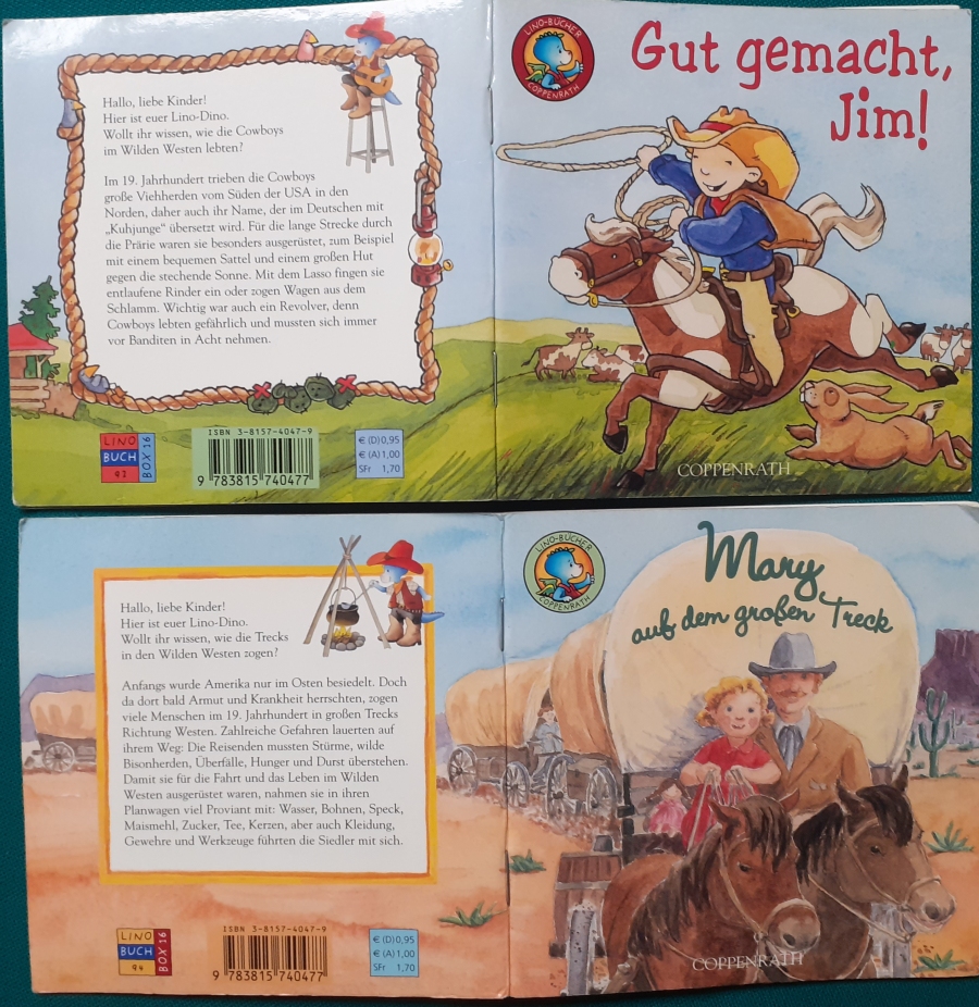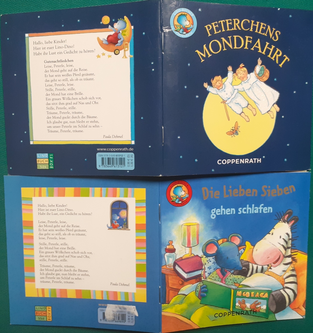Es handelt sich um geheftete Mini-Bilderbücher im Format 12