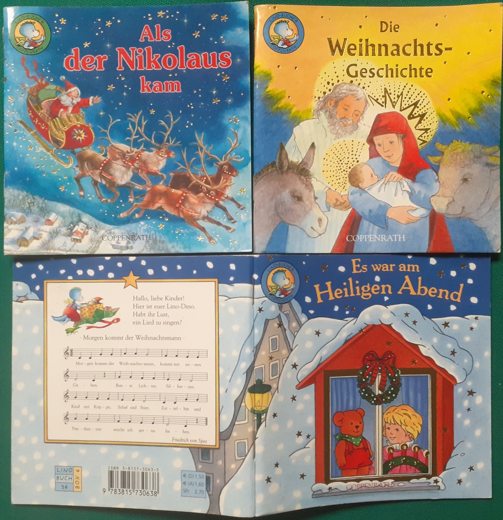 | 35 | Nach Lukas und Matthäus mit Bildern von Magdalene Hanke-Basfeld | Die Weihnachtsgeschichte | 1. Aufl. 2003; leicht an den Heftkanten bestoßen; guter altersgemäßer Zustand | 2 |