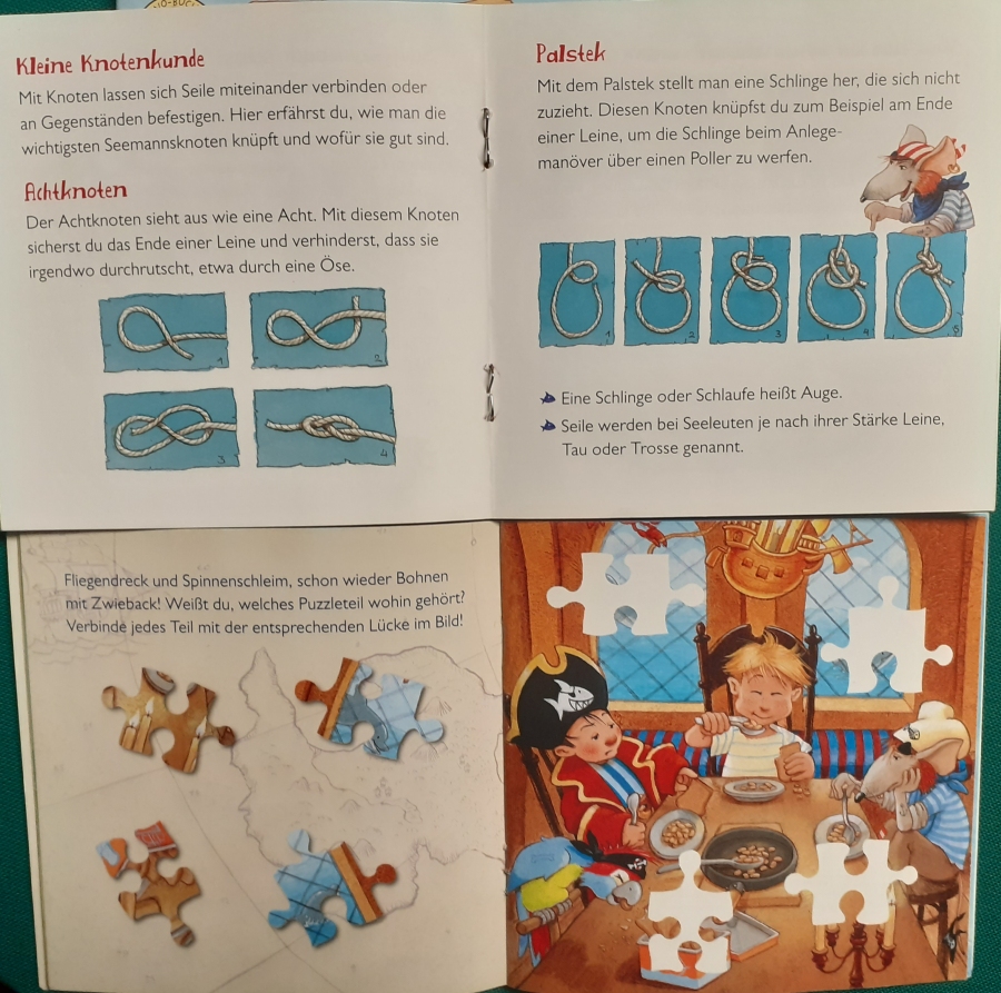 20 x 20 cm, rundum wasserabweisend; innen durchgehend farbig illustriert.