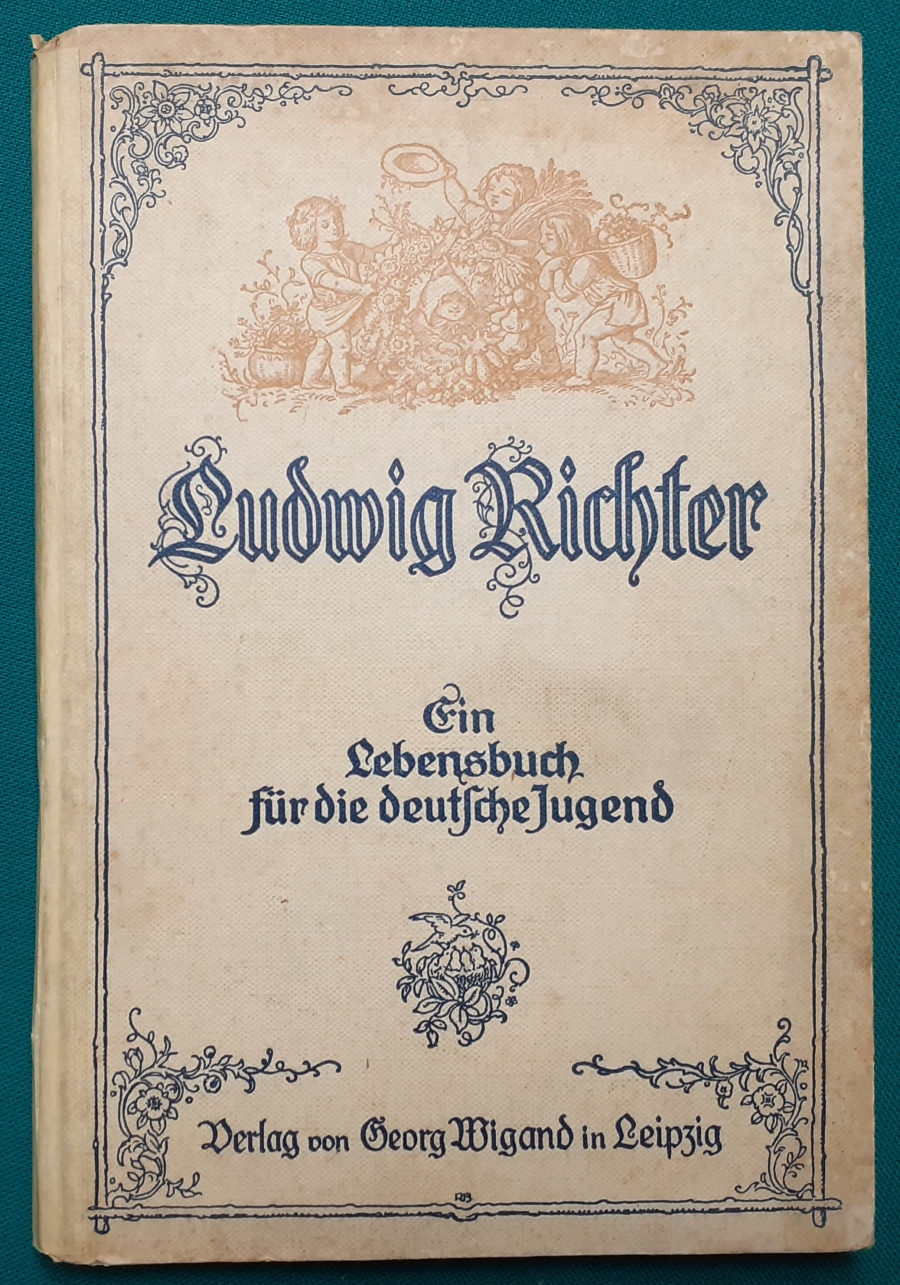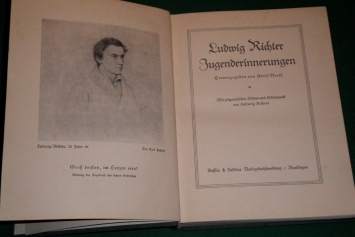 Ludwig Richter Der Maler der deutschen Seele und des deutschen Gemütes in seinen Holzschnitten und Lebenserinnerungen Wigand Verlag, Leipzig; Originalausgabe von 1922, 64 Seiten; Format 23 x 16 cm; Papp-Einband; Einband fleckig und berieben, Rücken wurde mit einem hellen Klebeband zum Schutz überzogen; innen z.T. gelbfleckig, Bindung labil - aber alle Seiten fest; insgesamt aber gepflegt und noch befriedigender altersgemäßer Zustand