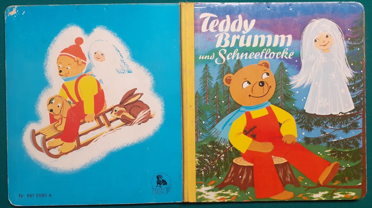 Teddy Brumm und Schneeflocke Wunderschöne Bilder von Felicitas Kuhn; Favorit Buch Nr. 661 5590 A; Ausgabe um 1975, 12 Seiten aus starkem Hartkarton - nicht paginiert; Leinenrücken mit festem lackierten Hartpappeinband im Format 19,5 x 17,5 cm; Einband etwas berieben; leicht an den Buchkanten bestoßen; insgesamt noch recht guter altersgemäßer Zustand; Preis: 6 EUR |
