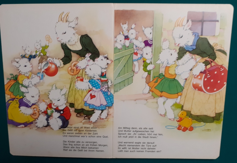 Ilse Wende-Lungershausen: Der Wolf und die 7 Geißlein S und S Bilderbuch Serie 1 2920 - Titel 1 2921; Ausgabe um 1965, 12 Seiten harter Karton, wunderschöne Illustrationen von Ilse Wende-Lungershausen; lackierter Hartpappeinband, Großformat 30 x 21 cm; guter altersgemäßer Zustand Preis: 18 EURO |