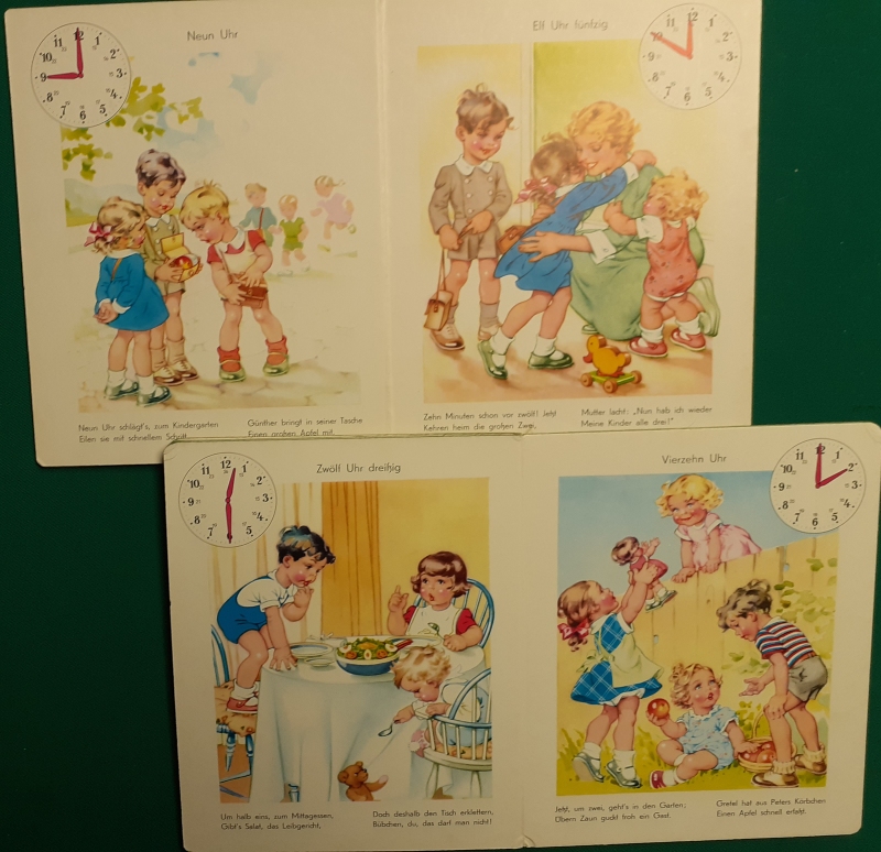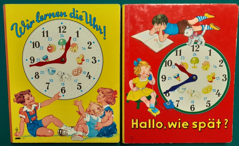 wie das obige "Uhrenlernbuch": Ilse Wende-Lungershausen Happy Days - Goedemorgen! Verlag Edegem, Belgien, Ausgabe von 2003, 8 Seiten in festem Hartkarton in Seidenglanz; Leinenband am Rücken mit lackiertem sehr festen Hartpappeinband, sehr farbenkräftige Illustrationen; nur ganz leicht an den Buchkanten bestoßen; sehr guter altersgemäßer Zustand, Preis: 19 EURO |