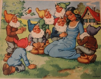 eine Vorlage (Schneewittchen) für ein Holzpuzzle aus den 1950er Jahren; Format ca. 23 x