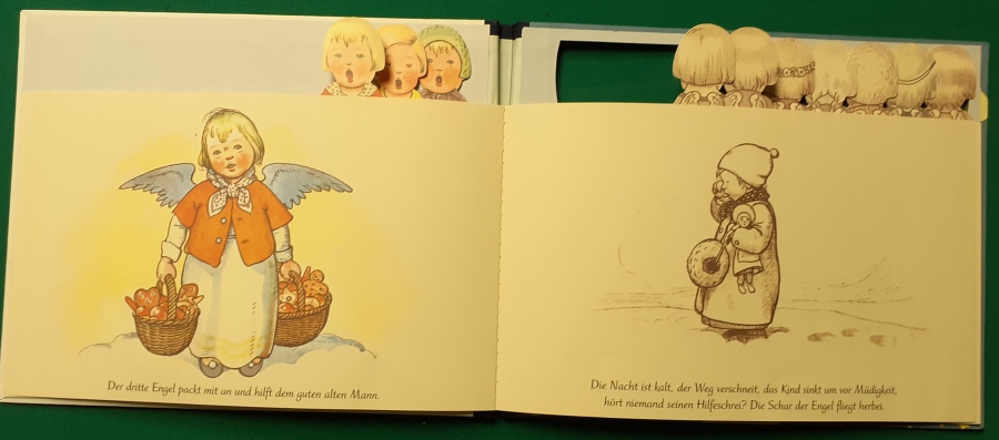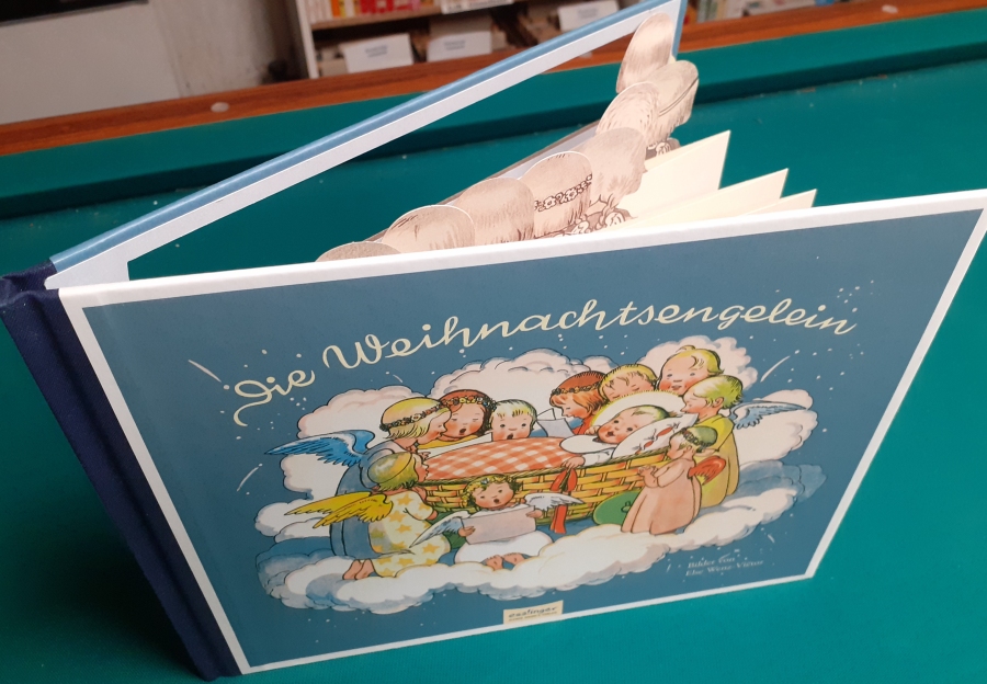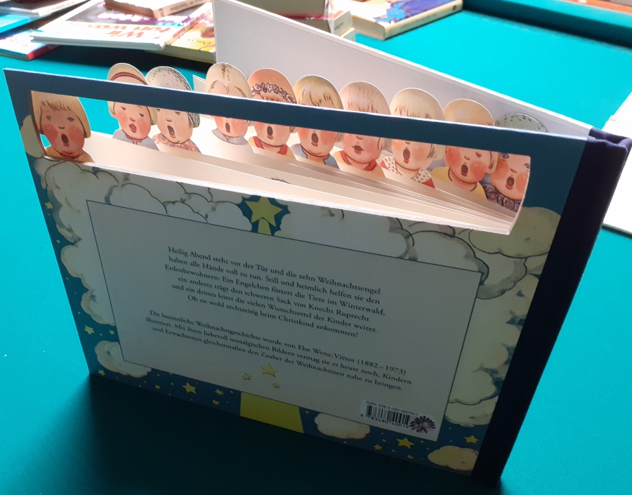 Bilder von Else Wenz-Viëtor: Die Weihnachtsengelein Esslinger Verlag, Stuttgart; Ausgabe von 2016, ca. 30 Seiten - nicht paginiert; Leinenrücken mit festem wasserabweisendem Hardcovereinband im Format 21,5 x 27 cm, interessantes Lochbilderbuch nach dem Muster der "10 Negerlein"; nur leichte Benutzerspuren; sehr gepflegt und sehr guter altersgemäßer Zustand Preis: 8 EUR |