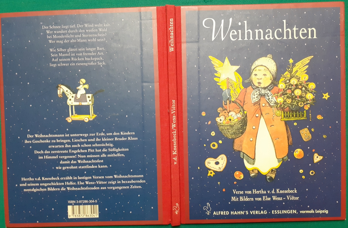 Wenz-Viëtor: Weihnachten Alfred Hahn´s Verlag, Esslingen, Ausgabe von 2003, überarbeiteter Nachdruck ca. 30 Seiten - nicht paginiert; Leinenrücken mit festem wasserabweisendem Hardcovereinband im Format 24 x 19 cm, nur leichte Benutzerspuren; sehr gepflegt und sehr guter altersgemäßer Zustand Preis: 8 EUR |