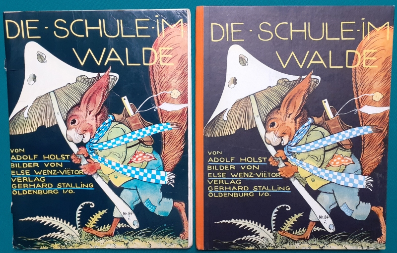 Else Wenz-Viëtor (geb. am 30. April 1882 in Sorau, (Nieder-Lausitz); gest. am 29. Mai 1973 in Icking) war eine Kinderbuchillustratorin. In den 1920er und 1930er Jahren gehörte sie zu den bekanntesten und produktivsten Bilderbuch-Illustratoren in Deutschland. Else Wenz-Viëtor wuchs bei ihren Großeltern in Freiburg im Breisgau auf. Von ihrem Großvater übernahm sie die Liebe zu Pflanzen und Tieren, später ihre Lieblingsmotive. Das Zeichnen erlernte sie weitgehend als Autodidaktin, ab 1901 besuchte sie die Kunstgewerbeschule in München und schloss sich einem Verein von Künstlerinnen an. Im Schwabinger Künstlerviertel porträtierte sie bekannte Künstlerpersönlichkeiten. In dieser Zeit heiratete sie den Maler Carl Rehm. Die Ehe wurde geschieden, 1913 heiratete sie den Architekten Paul Wenz. Im Jahr 1903 illustrierte sie ihr erstes von insgesamt über 150 Büchern, Das Buch vom Kinde. Ab 1909 arbeitete sie mit dem Verlag Alfred Hahn zusammen, schuf auch Bilder für Auerbachs Deutschen Kinderkalender. Außerdem war sie als freie Mitarbeiterin für die Deutschen Werkstätten für Kunst und Handwerk tätig, für die sie Inneneinrichtungen, Tapeten, Gläser etc. entwarf. 1920 begann die sehr produktive Zusammenarbeit der Künstlerin mit dem Oldenburger Stalling Verlag. Allein dort erschienen 30 von ihr bebilderte Bücher mit einer Gesamtauflage von über einer Million. Else Wenz-Viëtor nannte als Vorbild den englischen Grafiker Arthur Rackham. Dem Trend der damaligen Zeit folgend, zeichnete sie in den Bilderbüchern Pflanzen und Tiere häufig mit menschlichen Zügen. In Sonnenkinderstuben (1925) malt sie einen Schmetterling mit Schürze und eine Meise mit Kopftuch. Die vermenschlichte Darstellung von Tieren findet sich zum Beispiel in Die Schule im Walde (1931). Als eine der ersten freiberuflichen Illustratorinnen war Wenz-Vietor darauf angewiesen, Vieles und Gefälliges zu produzieren. Ihre Tochter Hedda Obermaier-Wenz (geb. 1918 in Icking; gest. 2014 in München) erhielt die graphische Ausbildung bei ihrer Mutter und zeichnete in einem fast identischen Stil. Sie schuf Illustrationen für ca. 60 Kinderbücher und war in Werdenfels als Malerin tätig. Informationen von wikipedia, Stand 04.12.2014 auch unter ihrem ersten Ehenamen "Rehm-Vietor" hat die Malerin Ausgaben veröffentlicht. (siehe Auerbachs Kinder-Kalender) |