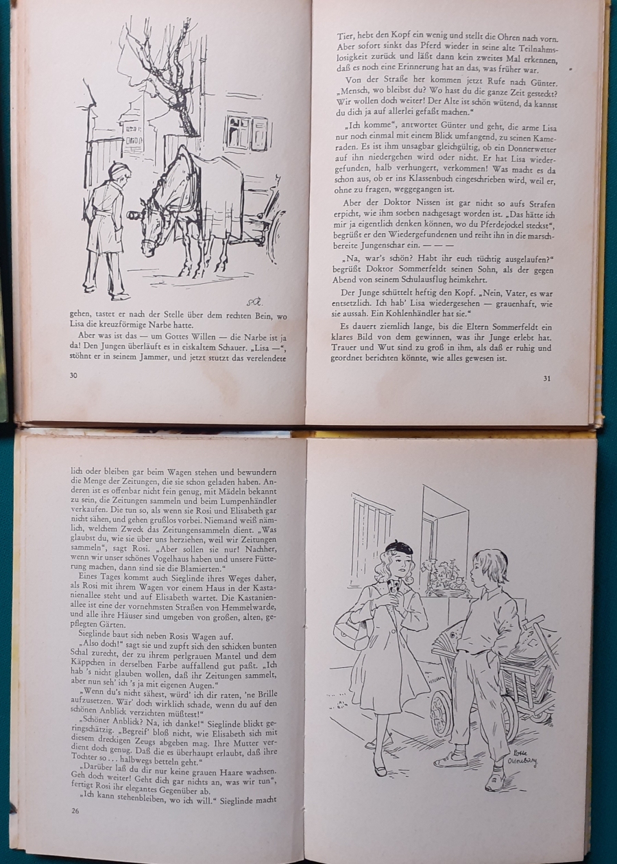 Gelber Leinenrücken mit den Bänden nach 1945: je ca. 150 Seiten, fester Pappeinband, 19 x 13 cm, Illustrationen jeweils von Lotte Oldenburg-Wittig; Achten Sie auf die verschiedenen Cover-Versionen (der Buchinhalt ist jeweils identisch!):