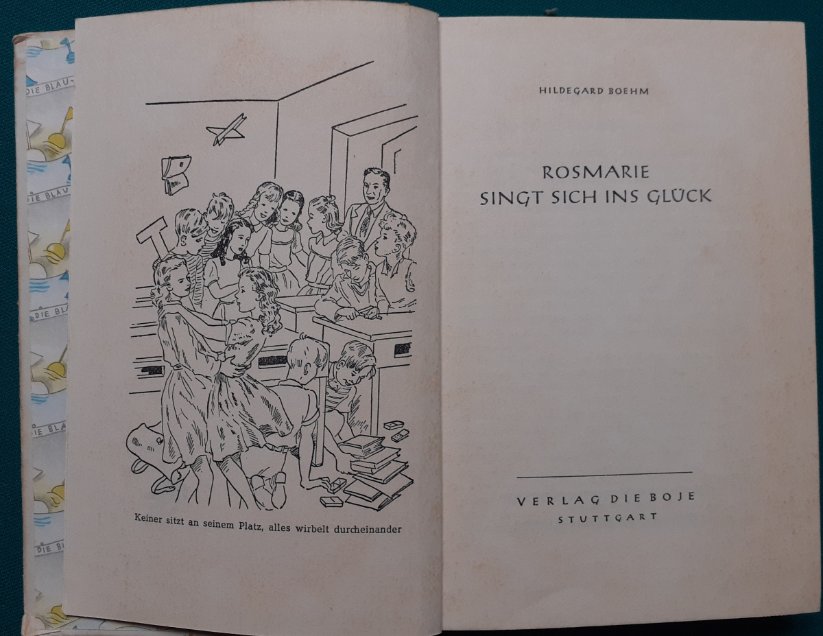Boje-Jugendbücher Rosemarie singt sich ins Glück Erstausgabe um 1955, 80 Seiten, Illustrationen von Lotte Oldenburg-Wittig; Leinenrücken mit festem Hartpappeinband; etwas an den Buchkanten bestoßen; Einbandetwas fleckig; insgesamt recht guter altersgemäßer Zustand; Preis: 7 EUR Hier zur Illustratoren-Galerie mit typischen Arbeiten von Lotte Oldenburg-Wittig |