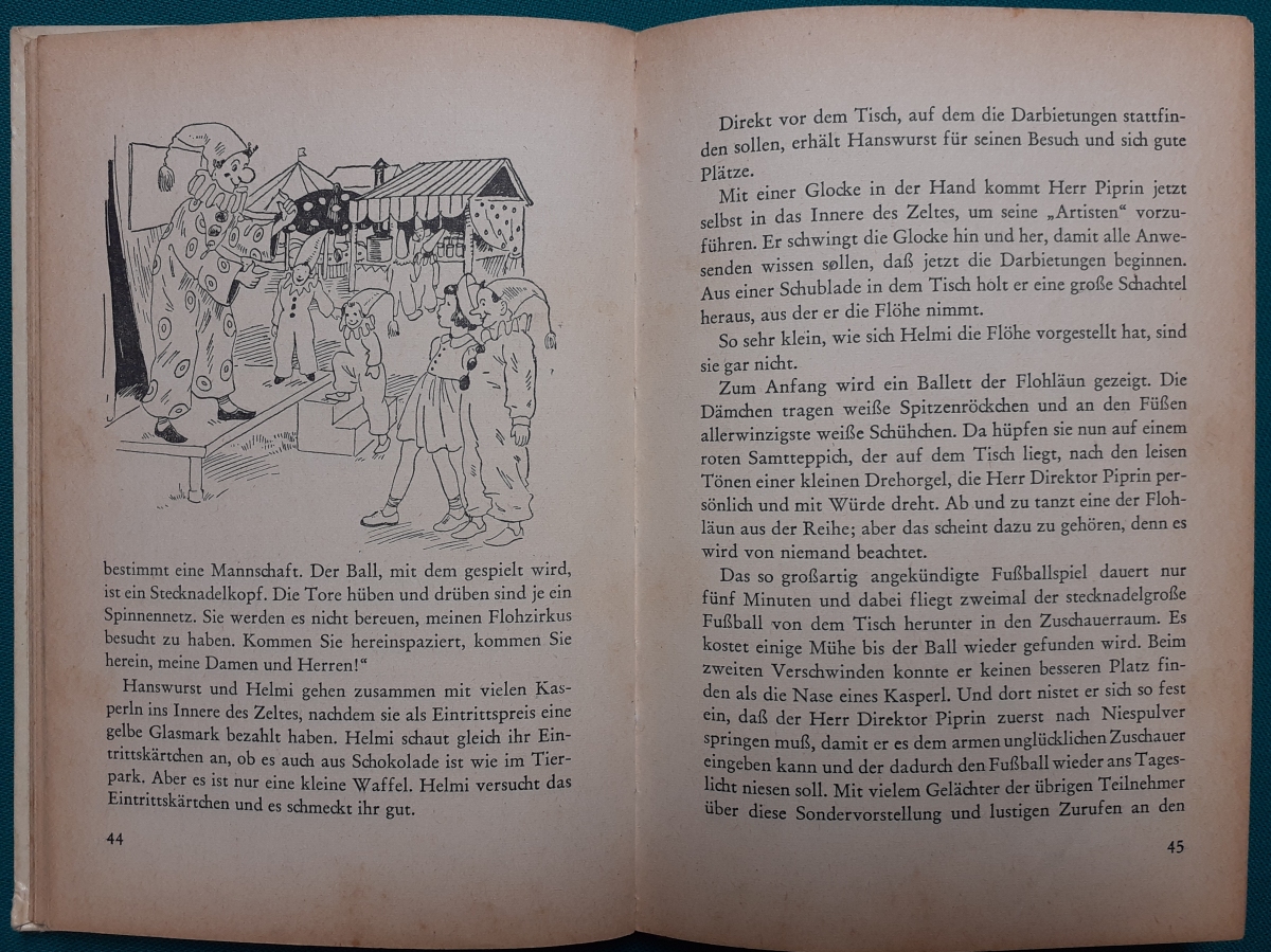 Boje-Jugendbücher Hanswurst Zipfelmann Eine heitere Erzählung Erstausgabe von 1951, 76 Seiten, Illustrationen von Lotte Oldenburg-Wittig, rundum lackierter fester Hartpappeinband; Rücken mit Tesafilm repariert; sonst guter altersgemäßer Zustand, Preis: 6 EUR Hier zur Illustratoren-Galerie mit typischen Arbeiten von Lotte Oldenburg-Wittig |