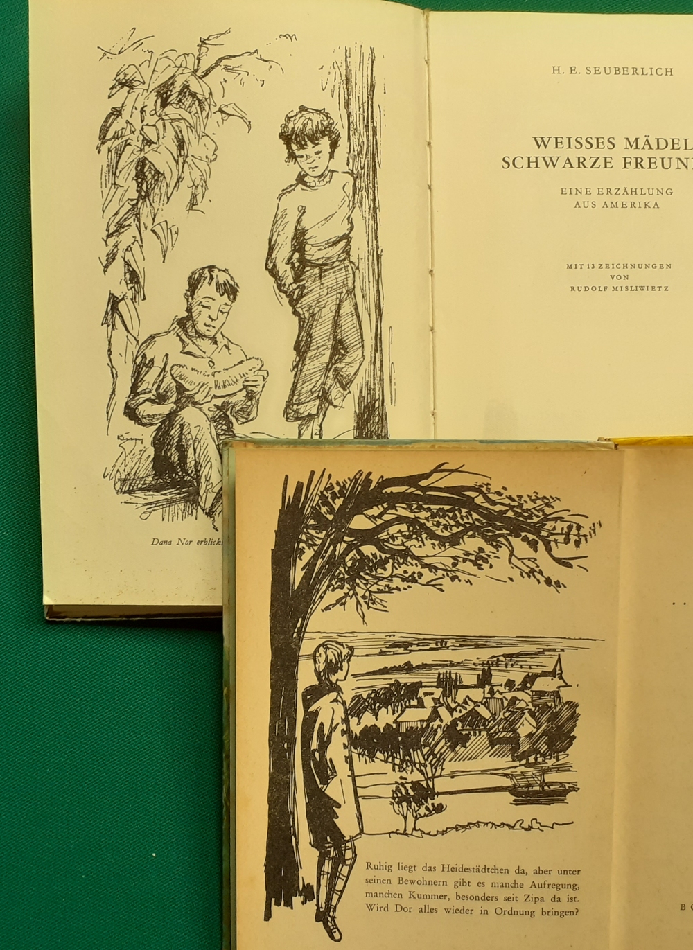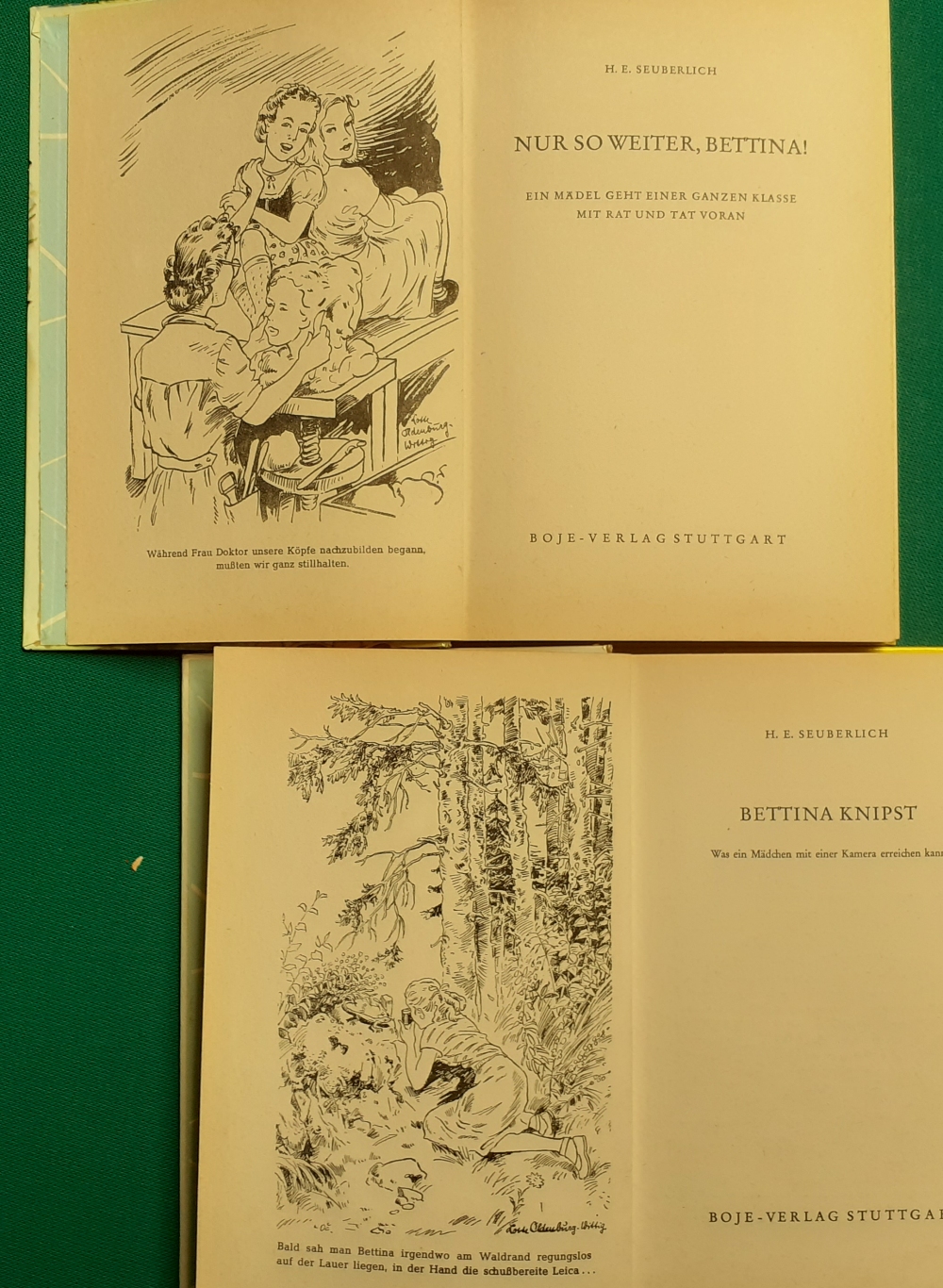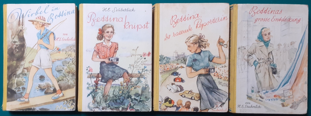 Hans Erich Seuberlich (geb. am 8.9.1920 in Riga; gest. am 25.12.1984 in Meckenheim) war in den 1950er Jahren ein beliebter deutscher Kinderbuchautor. 1956 wurde er Berufsoffizier (zuletzt: Oberst) und Militärschriftsteller. Seine Schulzeit verbrachte Hans Erich Seuberlich in Riga. Er nahm freiwillig am II. Weltkrieg teil und war zuletzt Oberleutnant. Nach seiner Flucht aus amerikanischer Gefangenschaft bildete er sich autodidaktisch weiter. Von 1947 bis 1956 lebte er als freier Schriftsteller in Wien, Salzburg und Bad Reichenhall. Sein erstes Buch, der Roman „Morgen vergessen“ erschien 1948 in Wien. Im gleichen Verlag erschien 1949 bis 1951 seine erste Jugendbuchreihe um den Jungen Robbi und seine Freundin Reni. Bekannt wurde Hans Erich Seuberlich durch seine Zusammenarbeit mit dem Boje-Verlag. Neben Lizenzausgaben der Robbi und Reni-Geschichten gab Boje drei Mädchenbuchreihen und zwei Einzelbände von Seuberlich heraus. Am bekanntesten wurde die zehnbändige Reihe um Bettina, das Vespa-Mädel. Als „Onkel“ Seuberlich vom Boje-Verlag erwarb er sich eine treue Leserschaft. Immer wieder bat er in seinen Büchern seine jungen Leserinnen – meist Mädchen zwischen 10 und 12 Jahren – um Zuschriften und ihre Meinung zu seinen Geschichten. Bis 1957 schrieb er 28 Jugendbücher, die eine Gesamtauflage von 1,4 Millionen erreichten. Informationen aus wikipedia vom 8.5.2014. |