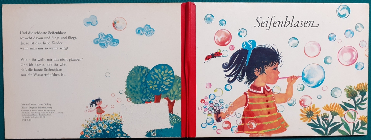 Der Kraft des Wassers auf der Spur ... von K.-R. Böttger; mit durchgehend farbigen Illustrationen von Heinz Schietzelt, Rudolf Arnold Verlag, Leipzig, Erstausgabe von 1971, 24 Seiten, Leinenrücken mit festem Hardcover-Einband; an den Buchkanten nur leicht bestoßen; sehr guter altersgemäßer Zustand Preis 7 EUR |