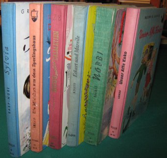 Ausgabe von 1954, 64 Seiten in Groß-Druckbuchstaben für Leseanfänger, Leinenrücken mit Hartpappeinband, etwas an den Buchkanten bestoßen; insgesamt guter altersgemäßer Zustand, |
