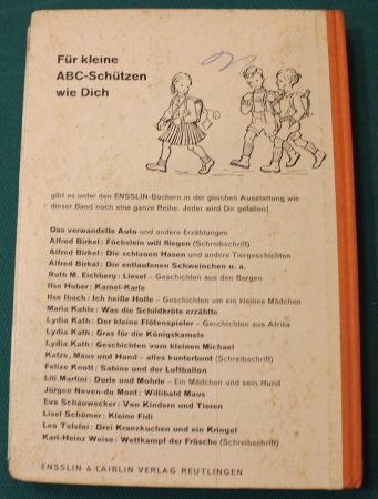Ausgabe von 1962, 64 Seiten in Schreibschrift für Leseanfänger, Leinenrücken mit lackiertem Hartpappeinband, altersgemäßer guter Zustand | 6 |