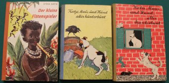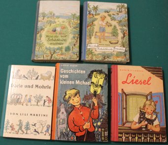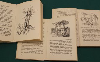 Ausgabe von 1951, 64 Seiten in Groß-Druckbuchstaben für Leseanfänger, Leinenrücken mit Hartpappeinband, Bindung vorn etwas gelockert; insgesamt noch guter altersgemäßer Zustand, |