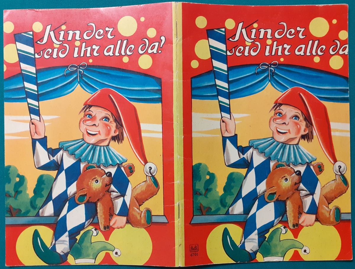 Hurra! Der Kasperle ist da Ensslin Verlag Reutlingen; Ausgabe von 1940; 96 Seiten; Illustrationen von Paul Beuttner; Leinenrücken mit lackiertem Hartpappeinband; Einband etwas berieben; an den Buchkanten bestoßen; insgesamt noch recht guter altersgemäßer Zustand, Preis: 11 EURO Paul Beuttner ist ein Künstler, der 1902 in Deutschland geboren wurde und 1944 gestorben ist. Seine Werke wurden 9 -mal auf öffentlichen Auktionen angeboten, hauptsächlich in der Gattung Gemälde. |