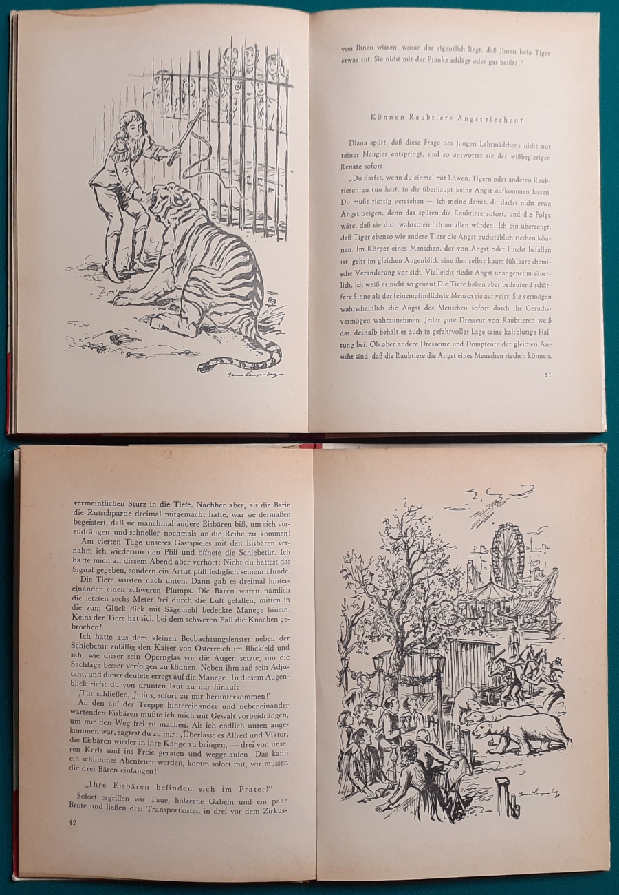 Erstausgabe von 1957, 72 Seiten; ehemals Bibliotheksbuch mit einem Stempel vorn innen; professionell foliert; Titelblatt war gelöst und wurde nachgeleimt; guter altersgemäßer Zustand | 5 |