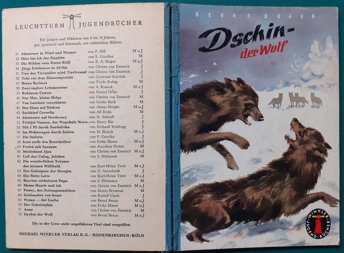 72 | Bernd Braun / Franz Reins | Dschin - der Wolf | Erstausgabe von 1959, 72 Seiten; einige Fasern am Rücken ausgefranzt; sonst ok. und recht guter altersgemäßer Zustand | 5 |