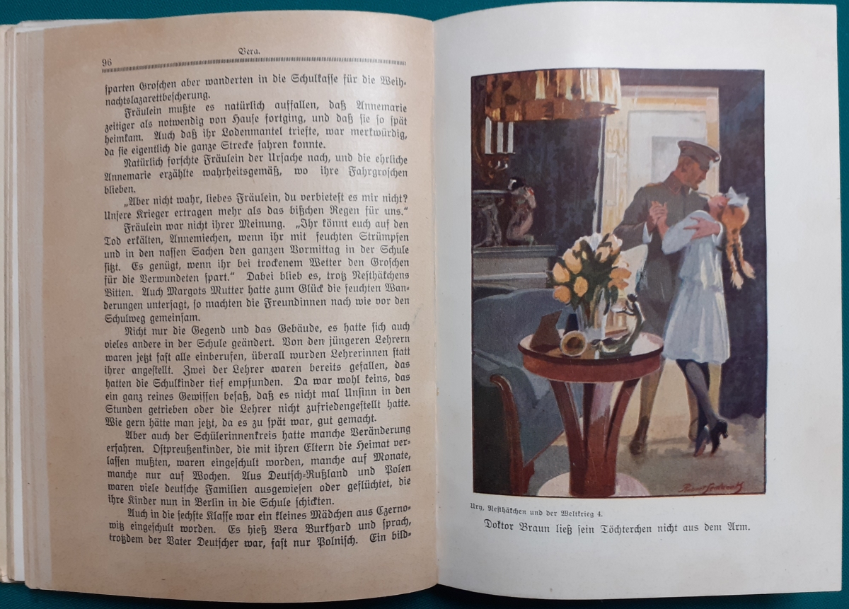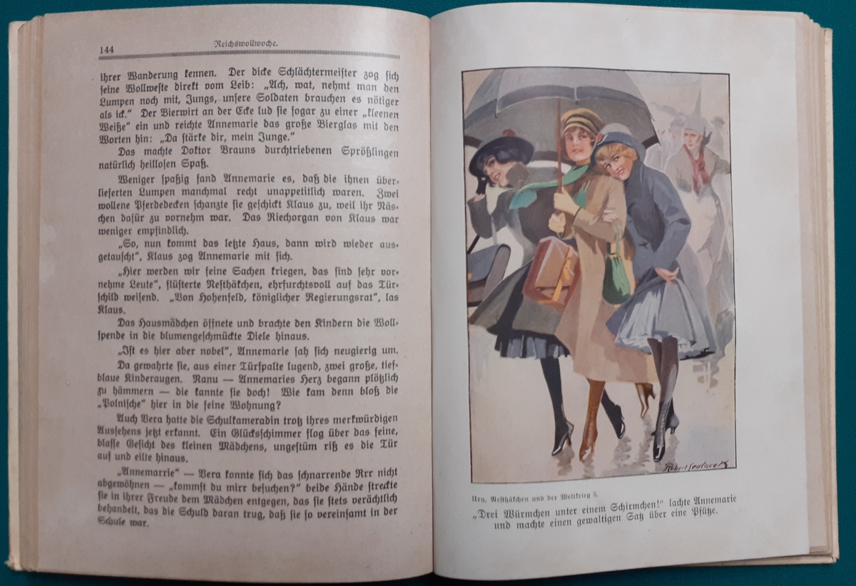 Nesthäkchens Backfischzeit Erstausgabe um 1924!!!, 216 Seiten, Leinenrücken mit festem Hartpappeinband, Illustrationen von Robert Sedlacek; Einband ziemlich fleckig; Bindung fest; insgesamt noch recht guter altersgemäßer Zustand, Preis: 26 EURO Hier zur Illustratoren-Galerie mit typischen Arbeiten von Robert Sedlacek |