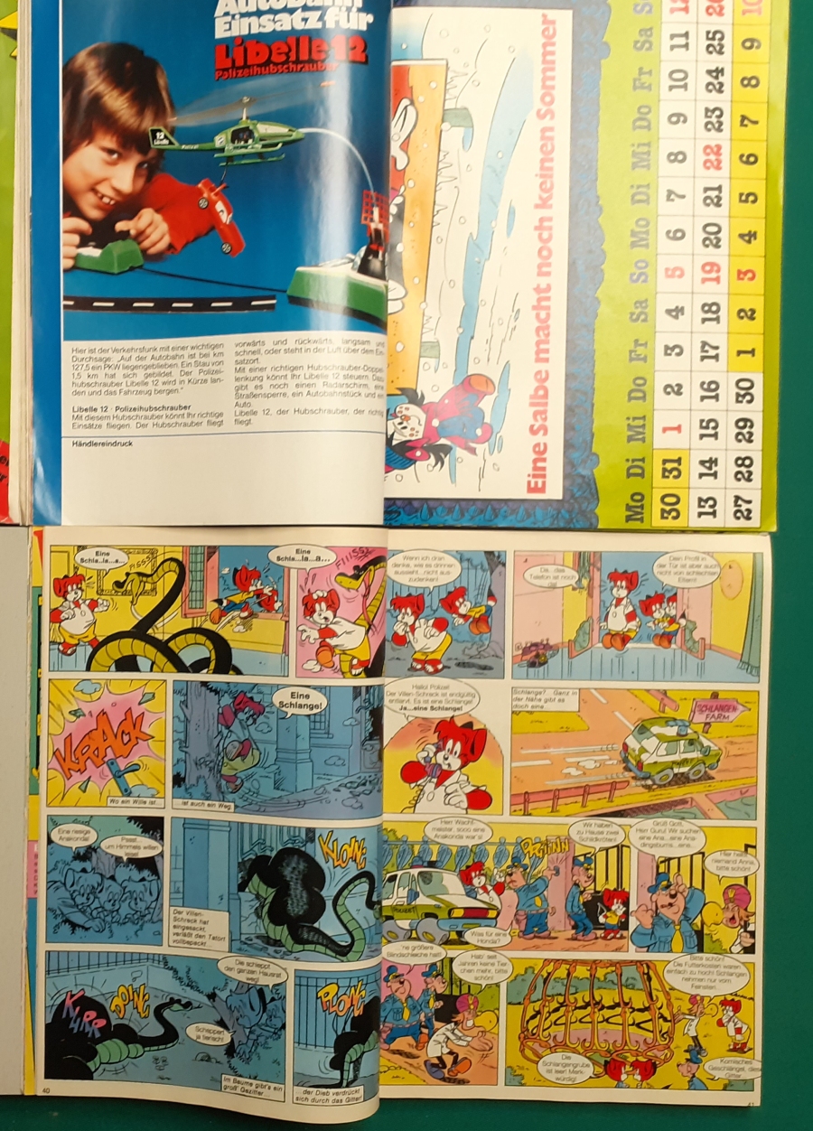 Fridolin; Beilage: Kalender; Diabolino; Pauli; Nr. 45: Diabolino; Bastelbeilage: Segelschiff; Fridolin; Pauli Nr. 46: Diabolino; Fax; Pauli; Sommer-Sonderband: Oma Pfiffig; Pauli Nr. 22: Hops und Stops; Bastelteil: Eisenbahnwaggon; Lupo; Fridolin; Pauli Nr. 23: Stops; Beilage: Posterkalender; Lupo; Knox; Pauli |