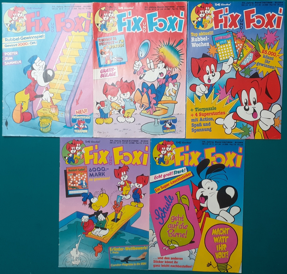Fridolin; 2 mal Fix und Foxi; Tom und Biberherz, Hops, Pauli, Lupo Nr. 5: Fax; Lupo; Tom und Biberherz; Fix und Foxi; Pauli Nr. 35: Bastelbogen Unfallwagen; Fix und Foxi; Pauli Nr. 15: Lupo; Hops; Tom und Biberherz; Eusebia; Pauli Nr. 16: zweimal Knox; Lupo; Diabolino; Tom und Biberherz; Pauli Knox; Lupo; Diabolino; Tom und Biberherz; Fridolin; Pauli |