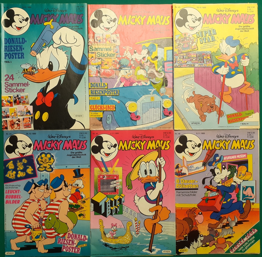 41 | 5. Oktober | Einband leicht bestoßen; mit Beilagen im Mittelteil: 24 Sammelsticker - dazu Donald-Riesen-Poster - Teil 1; insgesamt sehr guter altersgemäßer Zustand | 4 |