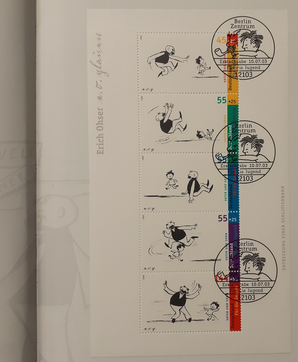 e.o.plauen (geb. am 18.3.1903 in Untergettengrün in Sachsen; gest. am 6. April 1944 in Berlin; eigentlich Erich Ohser) war ein deutscher Zeichner, der besonders durch seine Vater und Sohn - Cartoons Bekanntheit erlangte. Als Erich Ohser sechs Jahre alt war, im Jahre 1909, zog die Familie nach Plauen. Dort beendete er erfolgreich eine Schlosserlehre und studierte dann, gegen den Willen der Eltern, von 1921 bis 1926 in Leipzig an der Staatlichen Akademie für graphische Künste und Buchgewerbe. Nach dem Studium wurde Ohser schnell als Buchillustrator bekannt (unter anderem illustrierte er die Gedichtbände Kästners) und als Karikaturist. Insbesondere seine Karikaturen von Hitler und Goebbels zogen den Hass der Nationalsozialisten auf ihn. 1930 heirateten er und seine Studienkollegin Marigard Bantzer, der gemeinsame Sohn Christian kam im Jahr darauf zur Welt. Die Machtübernahme durch die Nationalsozialisten bedeutete das Aus für den politischen Zeichner Ohser. Sein Antrag auf Aufnahme in die Reichspressekammer wurde abgelehnt, was einem Berufsverbot gleichkam. Ende 1934 bewarb sich Ohser bei der Berliner Illustrirten Zeitung, die einen Comic ähnlich der Micky Maus suchte, mit einem Entwurf von Vater und Sohn. Ohser durfte nicht unter seinem wirklichen Namen veröffentlichen. Er erhielt erst den Zuschlag, nachdem er sich das Pseudonym e.o.plauen (seine Initialen und der Name seiner Heimatstadt) zugelegt hatte, und unter der Auflage, sich nicht politisch zu betätigen. Im Dezember 1934 kam die erste Bildergeschichte von Vater und Sohn heraus, die dann drei Jahre lang wöchentlich in dieser angesehenen und auflagenstarken Zeitschrift erschien. Seine Abneigung gegen das nationalsozialistische Regime konnte e.o.plauen auf Dauer nicht verheimlichen. Am 28. März 1944 wurden er und sein Freund Erich Knauf verhaftet. Der Prozess vor dem Volksgerichtshof sollte am 6. April von Roland Freisler eröffnet werden. e.o.plauen beging bereits vorher Suizid durch Erhängen. Knauf wurde im Mai hingerichtet. Die Vater-und-Sohn-Bildergeschichten sind bis heute die bekanntesten Werke Ohsers und handeln von einem Vater und seinem kleinen frechen Sohn, die mit den Problemen des Alltags kämpfen und manchmal auch große Abenteuer erleben. Sie wurden sehr schnell beliebt und sind – auch weil sie mehrheitlich ohne Text auskommen – auch in vielen anderen Ländern der Welt bekannt. Die Galerie e.o.plauen wurde am 1. Oktober 1993 in Plauen eröffnet. Es war ein Gemeinschaftsvorhaben der Stadt Plauen und ihrer Partnerstadt Siegen, des Landes Nordrhein-Westfalen und der Salamander AG. Seit 1995 verleiht die Stadt Plauen zu seinem Gedenken gemeinsam mit der e.o.plauen-Gesellschaft den e.o.plauen Preis. Am 24. September 2009 wurde als neues Domizil das Erich-Ohser-Haus in Plauen eingeweiht. Informationen aus Wikipedia, Stand: 19.8.2012 |